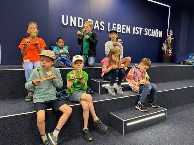 Im Anschluss folgte ein kreatives Bastelprojekt, bei dem jedes Kind sein eigenes Windrad baute. Dabei steht nicht nur das technische Verständnis im Mittelpunkt, sondern auch die Förderung von Kreativität. Jedes Windrad wurde ein sichtbares Ergebnis selbstständiger Arbeit und ein Mitbringsel, das zum Weiterdenken anregt.