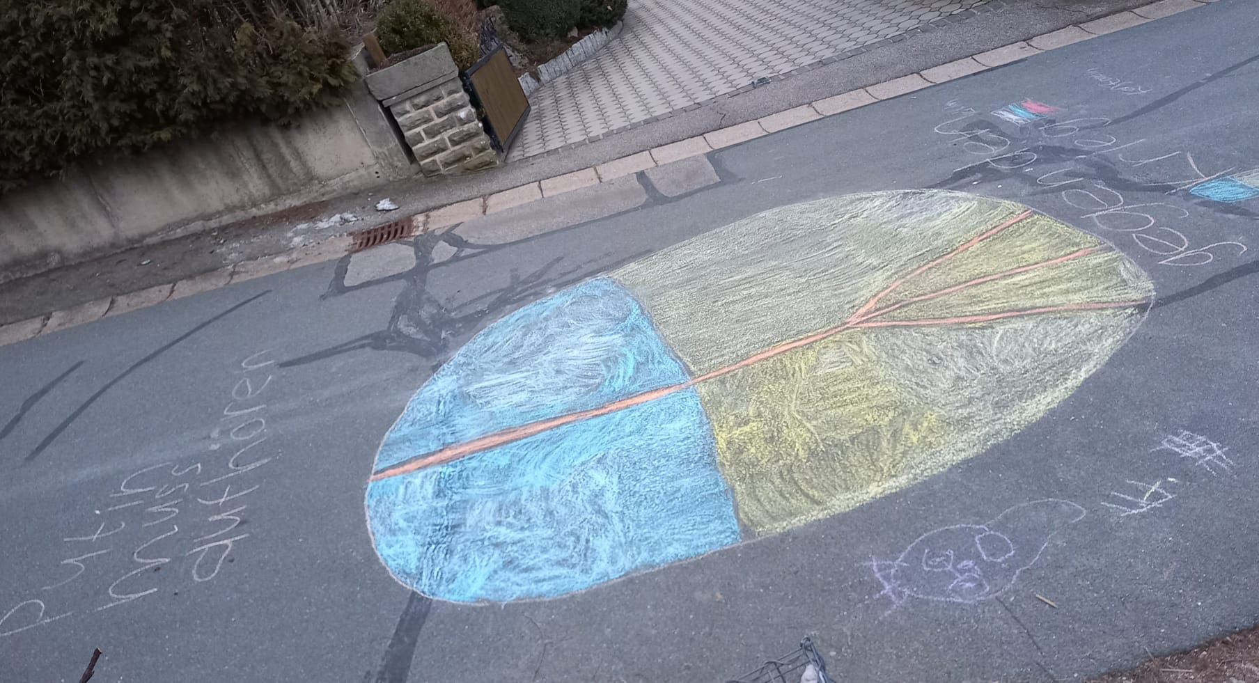Leuchtenberg. Kinder in Leuchtenberg wollten ihre Meinung zum Frieden in der Ukraine zum Ausdruck bringen und malten unter anderem die ukrainische Flagge auf die Straße.