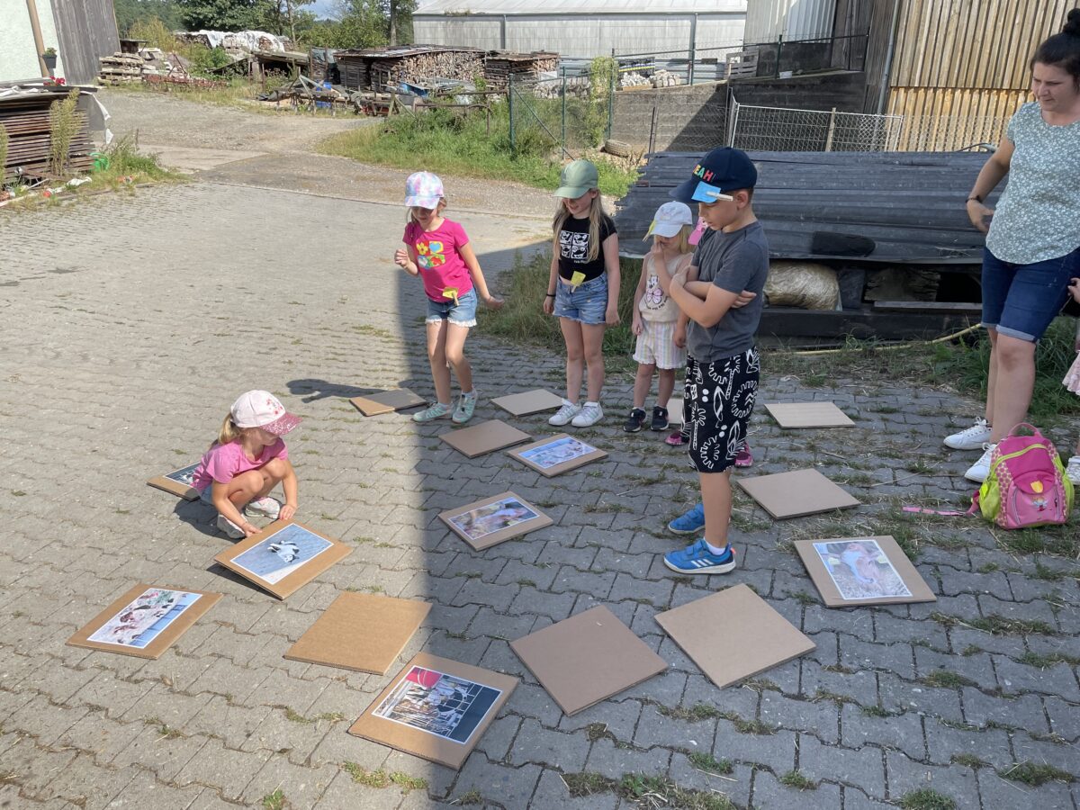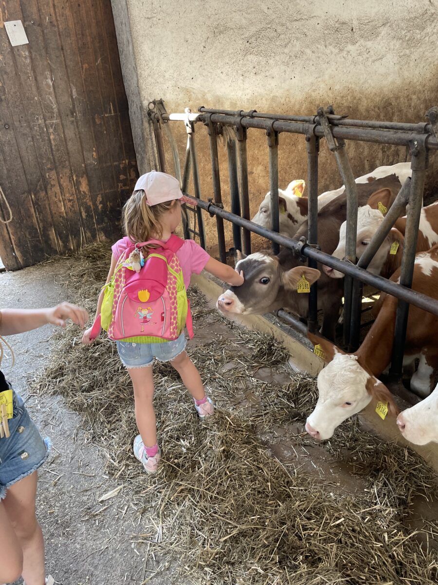 Große Augen gab es bei der Besichtigung der betriebseigenen Traktoren. Faszinierend für die Kinder war die Herstellung von Butter durch längeres Schütteln von Milch. Zum Höhepunkt bastelten die Kinder gemeinsam Grasköpfe. Bestehend aus einem Nylonstrumpf, gefüllt mit Erde und Grassamen, sowie verziert mit Kulleraugen, Nase und Ohren. Durch die richtige Pflege können die Kinder etwa ein bis zwei Wochen „Haare“ wachsen sehen. Damit lernen sie spielerisch die Pflege und Saat von verschiedenen Materialien.