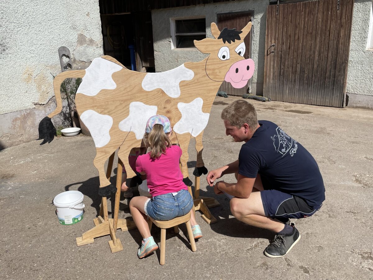 Der Ortsverein der SPD hatte am Wochenende im Rahmen des Ferienprogramms zum Besuch auf den Bauernhof eingeladen. In Meerbodenreuth lernten 35 Kinder das Leben dort näher kennen. Bei spielerischen Aufgaben erlebten sie die vielfältigen Aufgaben, die bei der Bewirtschaftung eines Hofes anstehen. So durften die Kinder an einer Holzkuh das Melken probieren. Groß war die Freude, wenn die „Milch aus dem Euter“ spritzte. Weiter fütterten die Kids Kühe und Ziegen.