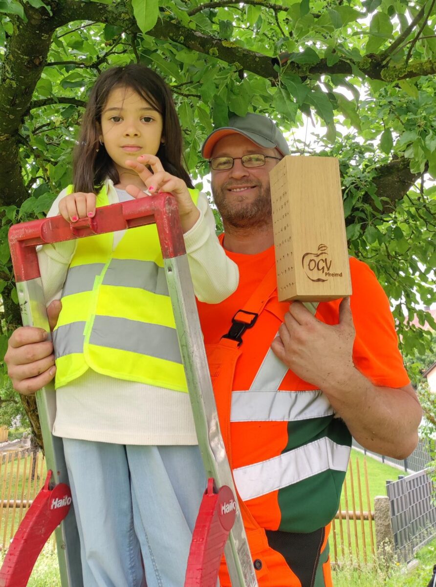Ein weiteres Highlight dieses Tages war das künstlerische Gestalten der Nisthilfen. Ein kreatives Vereinsmitglied übernahm es, die Holzkonstruktionen mit den Logos des Obst- und Gartenbauvereins sowie des Kindergartens zu versehen. Diese farbenfrohe Verschönerung sorgt dafür, dass die Nisthilfen nicht nur eine funktionale, sondern auch eine ästhetische Bereicherung für Pfreimd darstellen.