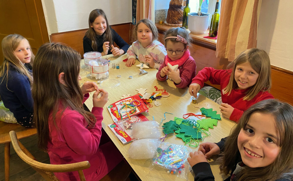 Die Aktion des Jugendforums hat allen großen Spaß gemacht. Zum 2. Mal in Folge trafen sich die Kinder beim „Biemichl“ in der warmen Stube, um unter Anleitung Christbaumkugeln, Anhänger oder Perlensterne zu basteln. Vorgeschnittene Filzschablonen wurden mit Watte gefüllt, mit einem Band zusammengenäht und anschließend mit kleinen Pompons beklebt. Außerdem konnte man Perlensterne und Paillettenkugeln oder Sterne basteln. Am Ende haben die Kinder die Kunstwerke selbst an den Kirchenthumbacher Christbaum gehängt. Zur Verpflegung gab es Brezen, Süßigkeiten und Getränke.