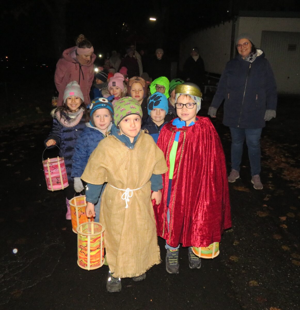 Nach der Andacht zogen die Kinder mit ihren Laternen durch die Straßen. Den Zug führte Hanna Kallmeier, die den heiligen Martin darstellte, mit ihrem Pferd „Faine“ an. Nach der Feier lud der Elternbeirat zu Glühwein, Kinderpunsch, Weiner und Lebkuchen ein.