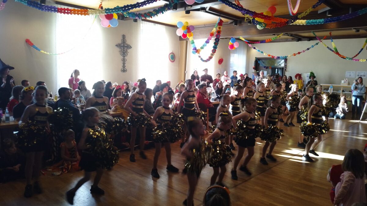 Gleich zu Beginn begrüßte Moderator und Sheriff Matthias die vielen verkleideten Kinder und Eltern. Die Gäste stärkten sich mit Kuchen, Torten, Muffins und Amerikanern. Danach traten die zwei Tanzmariechen Hannah und Constanze von der Faschingsgilde Dörflas auf. Im Anschluss spielten die Kinder Bobbycar-Rennen, Reise nach Jerusalem und Matchboxautos-Aufwickeln.