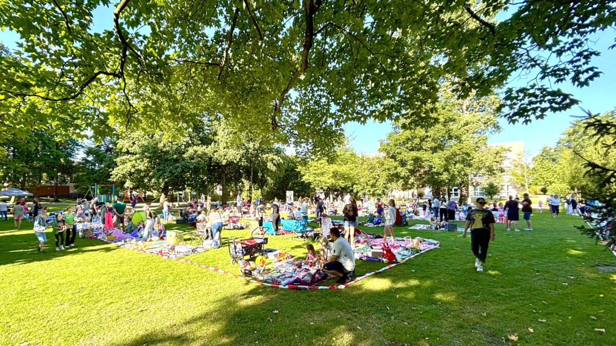 Bereits am frühen Morgen sicherten sich viele der jungen Verkäuferinnen und Verkäufer mit Picknickdecken ihren Platz auf der Wiese. Von 9 bis 13 Uhr wurde dann fleißig gefeilscht, verkauft und getauscht.