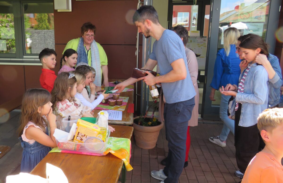 Beim anschließenden Fest vor der Mittelschule feierten viele Besucher bei herrlichem Sonnenschein. Im und rund um den Kindergarten gab es für die Kinder Bastelangebote und Spiele. Ein Besuch beim Kaspertheater sorgte für Kurzweil. Die Maxis verkaufen selbstgemachte Erdbeermarmelade. Der Elternbeirat versorgte die Besucher mit Getränken, Kaffee und selbstgebackenem Kuchen. Der Partyservice Richtmann bot Grillspezialitäten an.