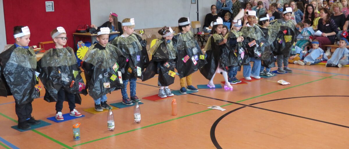 Bei schönem Wetter feierte die Kindertagesstätte Regenbogenland der Arbeiterwohlfahrt in Altenstadt sein Kindergartenfest. In der Turnhalle der Mittelschule erfreuten sich zahlreiche Eltern und Besucher an der Aufführung der Kinder. Das Spiel hieß „Ob Groß oder Klein, jeder kann ein Klima-Superheld sein“. Umweltverschmutzung mit Plastik prangerten die Kids an.