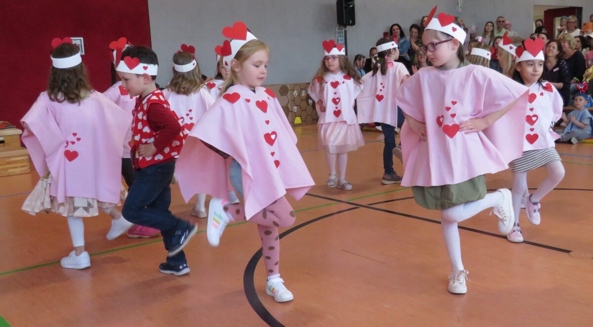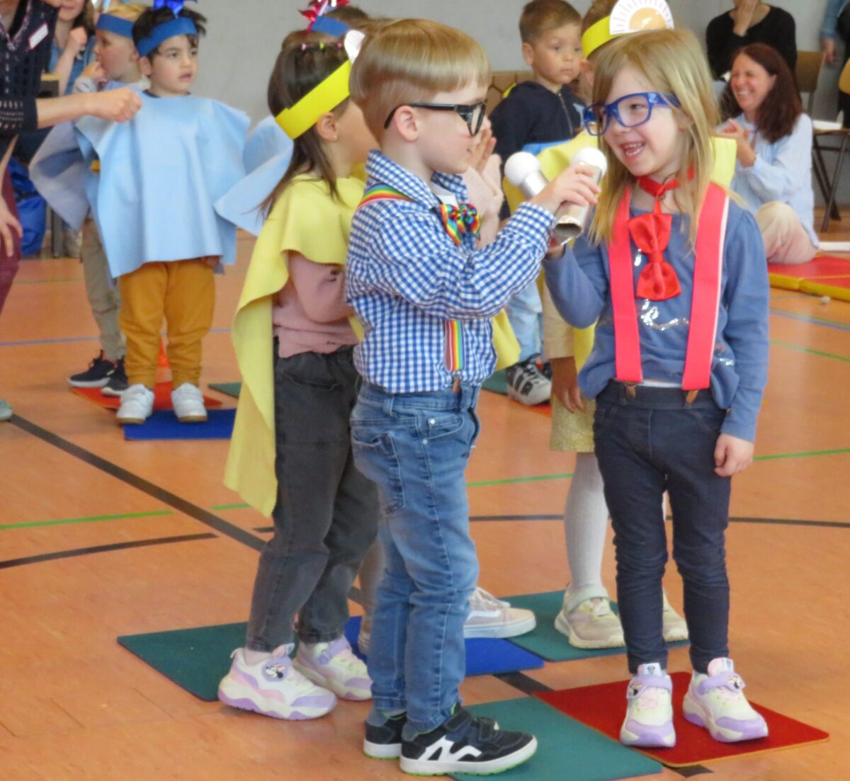 „Weil wir Freunde sind“ sangen die Maxis. Zum Schlusslied „Gemeinsam sind wir stark“ tanzten alle Gruppen und viele Kinder aus den Zuschauerreihen mit den Erzieherinnen. Bei den Darbietungen sah man neben der großen Freude der Besucher über die schöne Aufführung auch so manches nachdenkliches Gesicht. Tosender Beifall belohnte die Kinder für ihre Aufführung.