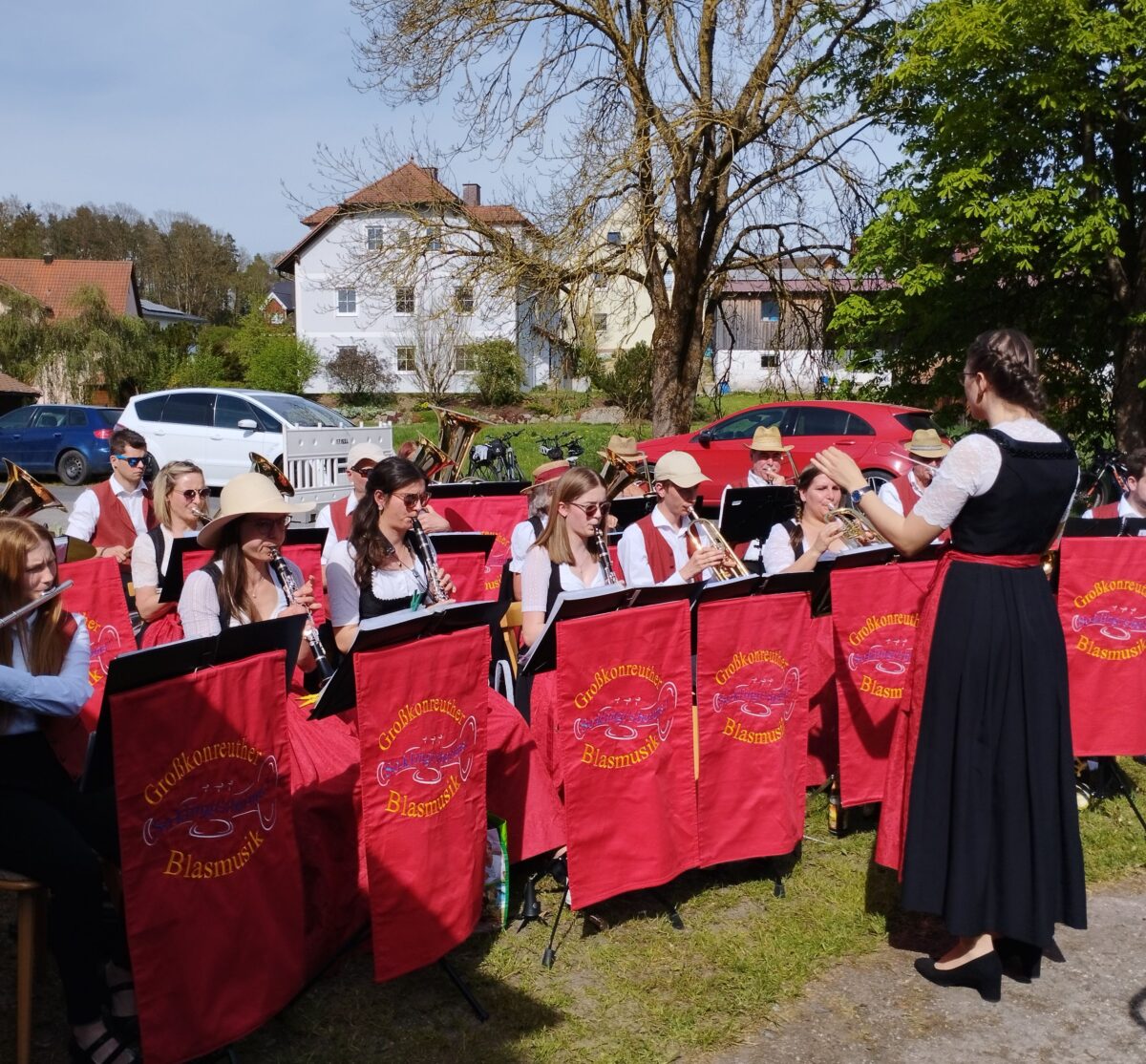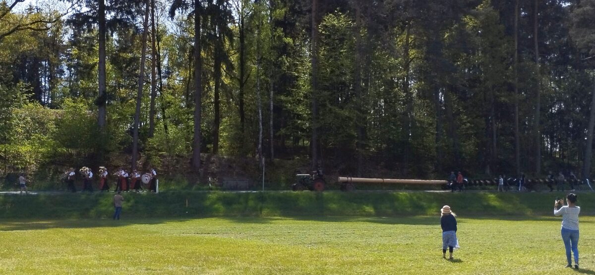 Um 15 Uhr waren die Biertische und-bänke gut gefüllt. In Begleitung der Großkonreuther Blasmusik marschierten die Männer und Frauen mit ihren von alten Traktoren gezogenen Maibaum ein. Zuerst der ,große Maibaum, hinterher der etwas kleinere mit den Kindern.