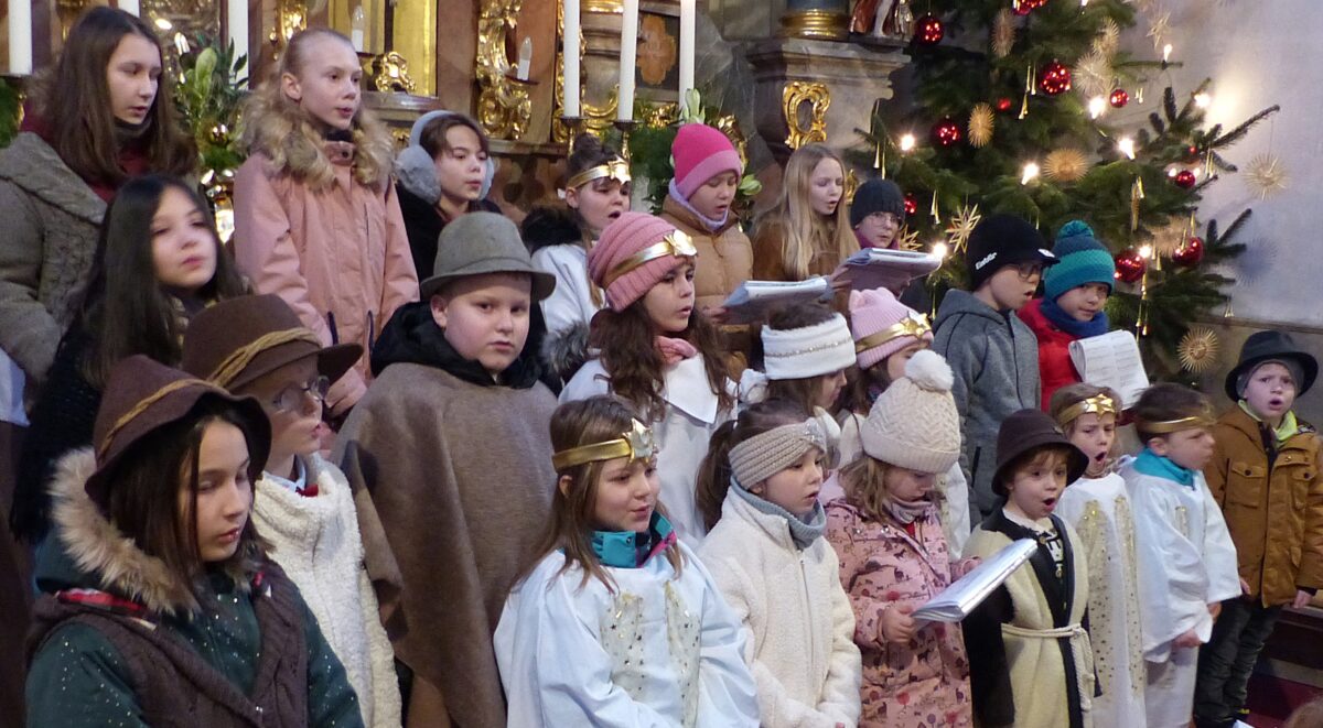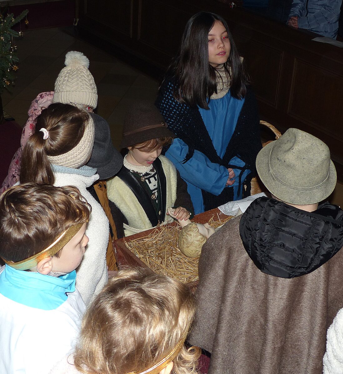 Die Mette gab den Kindern auch die Möglichkeit, ihre in der Adventszeit angesparten Opferkästchen für die Mission abzugeben. Dieser Moment unterstrich die Botschaft des Teilens und der Solidarität. Der Gottesdienst endete mit einem emotionalen Augenblick, als sich die Kinder als lebende Krippe aufstellten und das Lied von der Heiligen Nacht sangen. Der langanhaltende Applaus der Kirchenbesucher zeigte ihre tiefe Anerkennung und Dankbarkeit gegenüber allen Beteiligten, die diesen besonderen Gottesdienst ermöglichten.