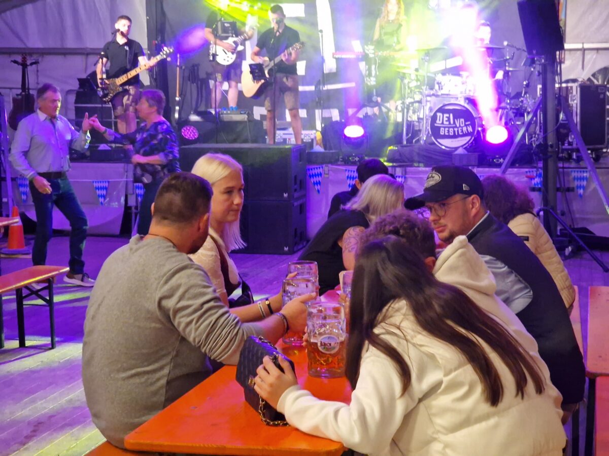 Am Samstagabend verwandelte die Band „Dei vo Gestern“ das Zelt in eine Tanzfläche und bediente mit Klassikern, Schlagern und Rocknummern unterschiedliche Geschmäcker. Gegen Mitternacht standen viele jüngere Besucher auf den Bierbänken, sangen zu „Sierra Madre“ und hielten die Stimmung hoch.