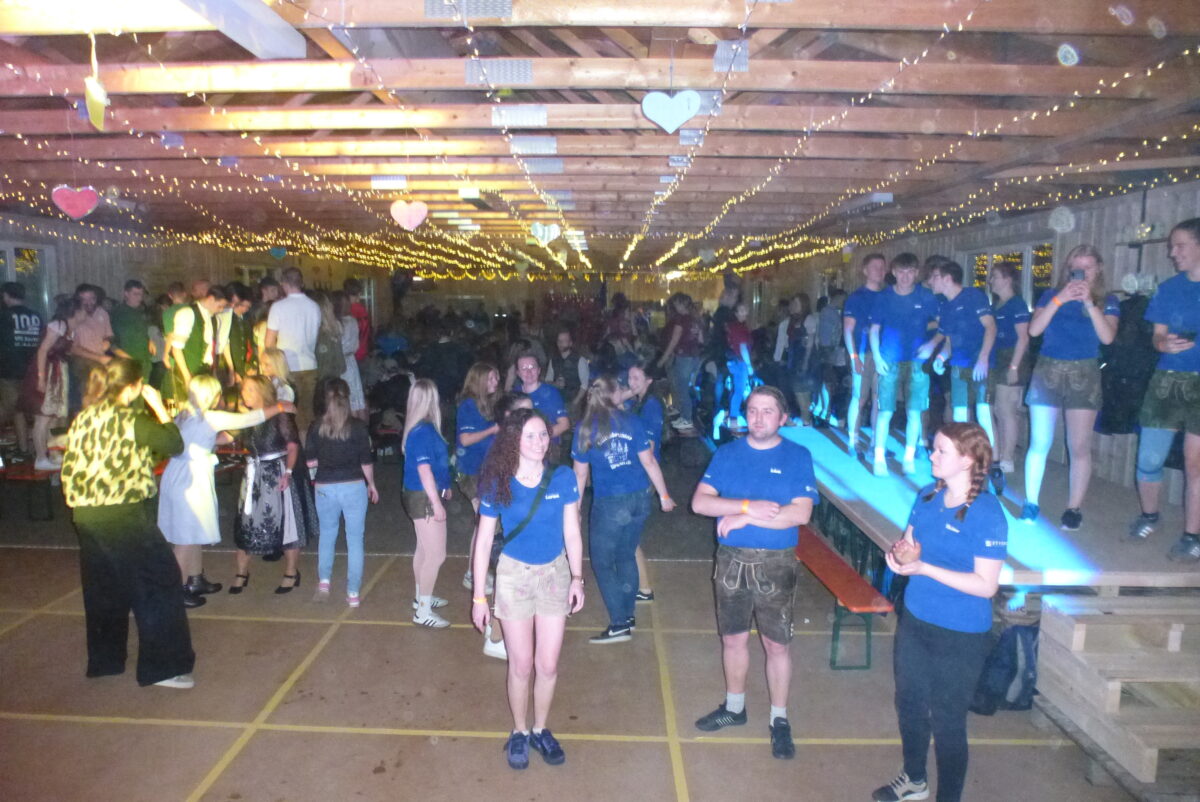Restlos gefüllt war die große FC-Stockhalle am Abend, als die achtzehn Tanzpaare einzogen, sofort auf dem großen Kirwatisch mit Boarischem und Discofox loslegten. Mit ihrem Namen „Himmelfahrtskommando“ gab die sechsköpfige Parksteiner Band mit Sängerin Linda Schneider und Eva Köbler am Keyboard sofort Vollgas. Das Jungvolk stand nur noch auf den Bänken bei Tanz- und Partymusik, Rock, AC/DC und Spider-Murphy-Gang-Hits.