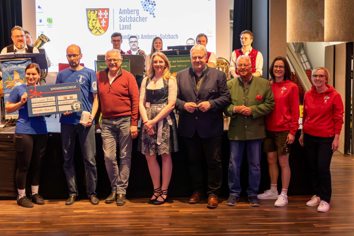 Rund 300 Gäste folgten der Einladung des Landkreises Amberg-Sulzbach. Nach der Begrüßung durch die Initiatorin Regina Wolfohr, Landrat Richard Reisinger und Altlandrat Armin Nentwig überreichte die Sparkasse Amberg-Sulzbach eine Spende in Höhe von 10.000 Euro an den Landkreis Amberg-Sulzbach. Die Theuerner Kirwapaare eröffneten daraufhin den Tanz und läuteten den Frühschoppen ein.