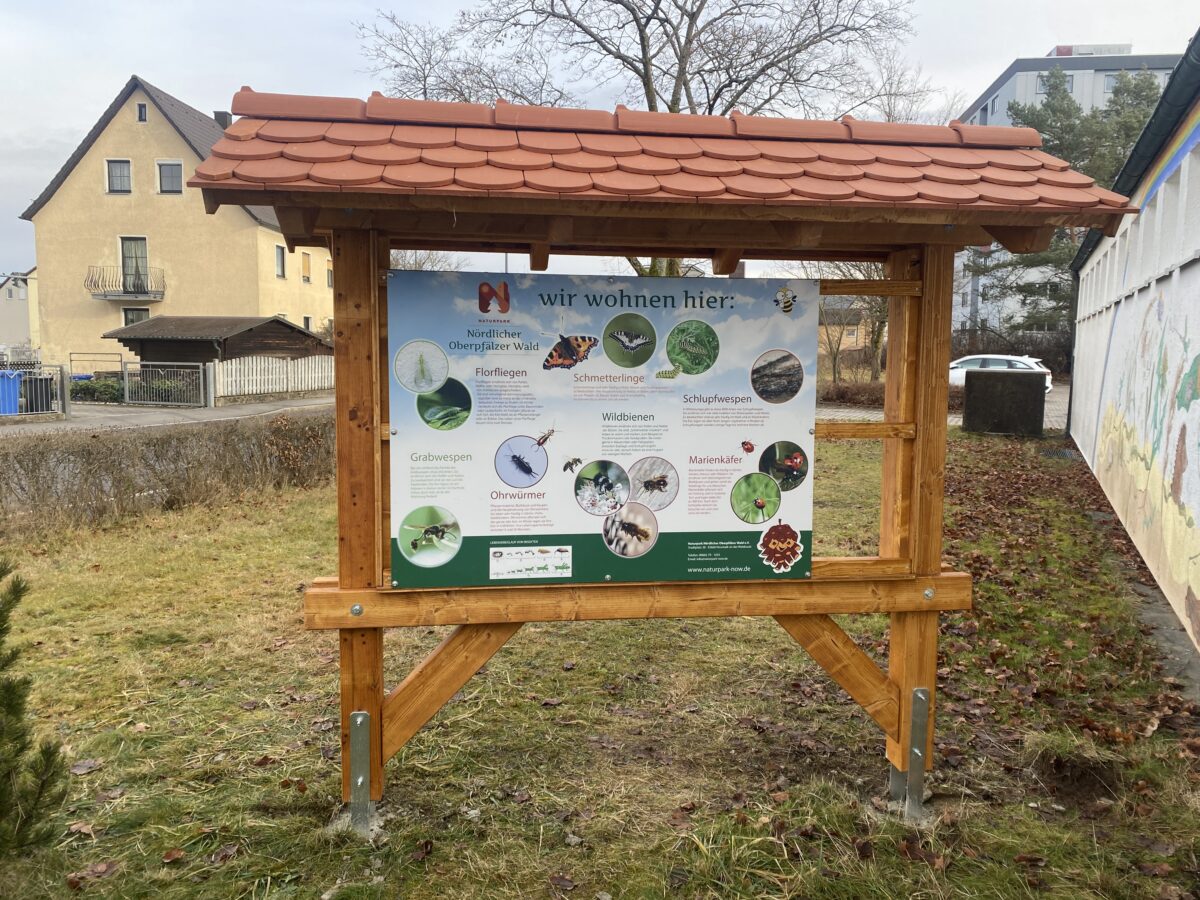 Die Errichtung des Insektenhotels ist ein wesentlicher Beitrag zur Förderung der biologischen Vielfalt und zum Schutz unserer Umwelt. Es wurde mit viel Sachverstand vom Naturpark Nördlicher Oberpfälzer Wald geplant und mit Unterstützung des Zimmerers Herrn Kellner umgesetzt, der das Hotel liebevoll gestaltet und aufgebaut hat. Die Konstruktion beinhaltet diverse Materialien wie Obstbaumstämme und Holzwolle und verfügt sogar über ein spezielles Schwegler Insektenhotel, das herausgenommen und zur genauen Beobachtung verwendet werden kann.