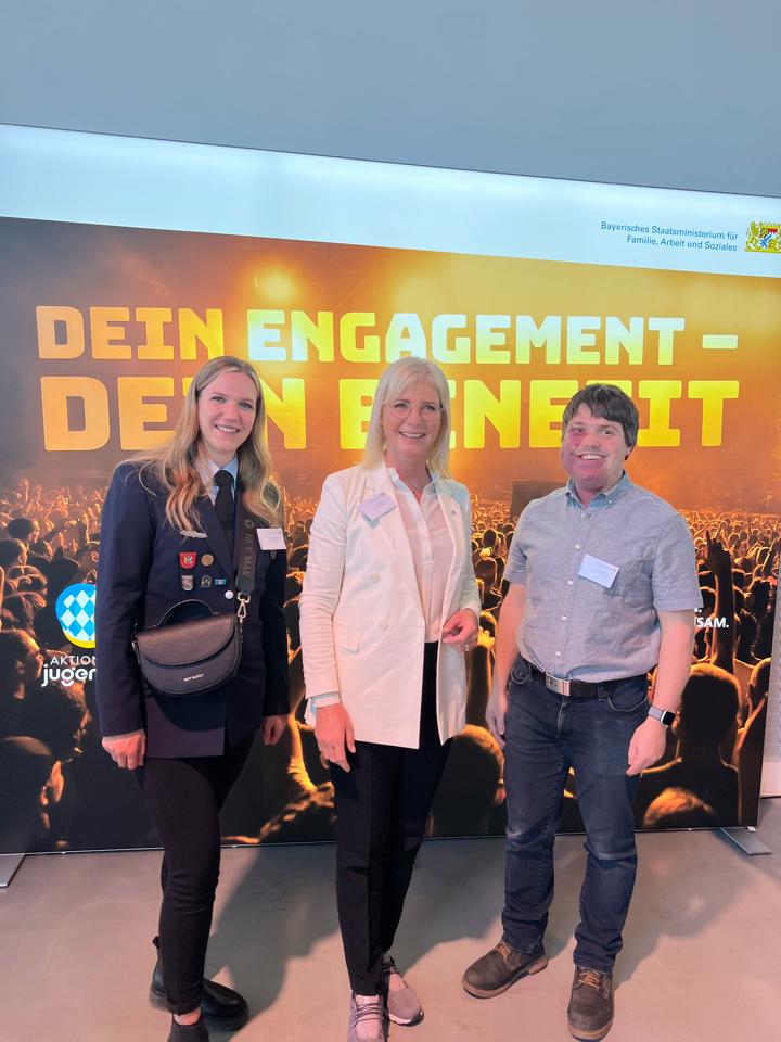 Nach Vorschlag des Kreisjugendrings sendete Landrat Roland Grillmeier Carolina Grabis von der Jugendfeuerwehr Mitterteich und Andreas Heinz, Jugendbeauftragter von Krummenaab, zu diesem Event in die Landeshauptstadt. Die beiden Engagierten zeichneten sich besonders dadurch aus, dass sie mit ihren Aktionen und Projekten das gesellschaftliche Leben in kleinen Teilen aufrechterhalten haben, so Landrat Roland Grillmeier. Für Jürgen Preisinger, Erster Vorsitzender des Kreisjugendrings, haben die beiden die gesamten ehrenamtlichen Verantwortlichen in der Jugendarbeit vertreten. Gerade die Kinder und Jugendlichen haben in den letzten Jahren auf vieles verzichten müssen. Mit viel Kreativität haben die Jugendleiter versucht, Kontakt zu ihren Kindern und Jugendlichen zu pflegen.