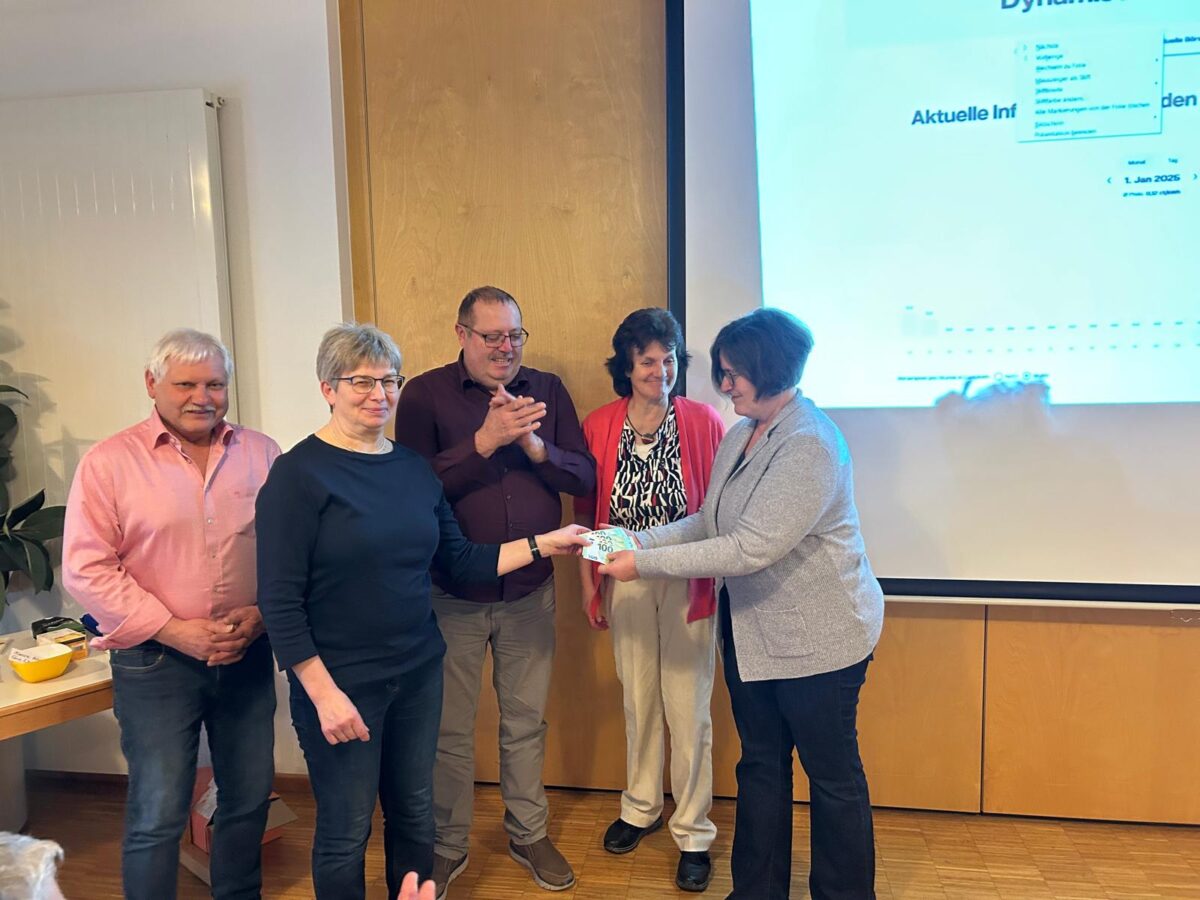 Peter Nißl und Sonja Hauser von der KLB Penting hatten zum Abschluss noch ein Geschenk vorbereitet. KLB-Geschäftsführerin Maria Reitinger nahm für den Diözesanverband 500 entgegen und dankte herzlich für diese Spende, die dem Hilfsprojekt im Senegal zugutekommen.