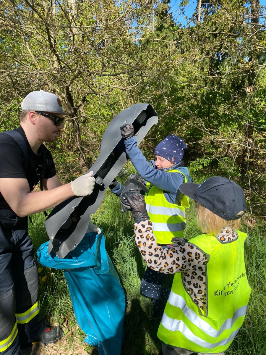 Der Anstoß für die Aktion kommt jedes Jahr wieder vom Landratsamt und erinnert daran mal nachzusehen, was so alles illegal in der Natur entsorgt wurde. 34 Kinder und Jugendliche, begleitet von 13 Erwachsenen mit einer Altersspanne von drei bis 50 Jahren, machten sich im gesamten Ortsgebiet auf die Suche, um jeglichen Müll einzusammeln. Die Jäger und Sammler unter den Kindern hatten natürlich die größte Freude, wenn sie etwas Außergewöhnliches fanden.