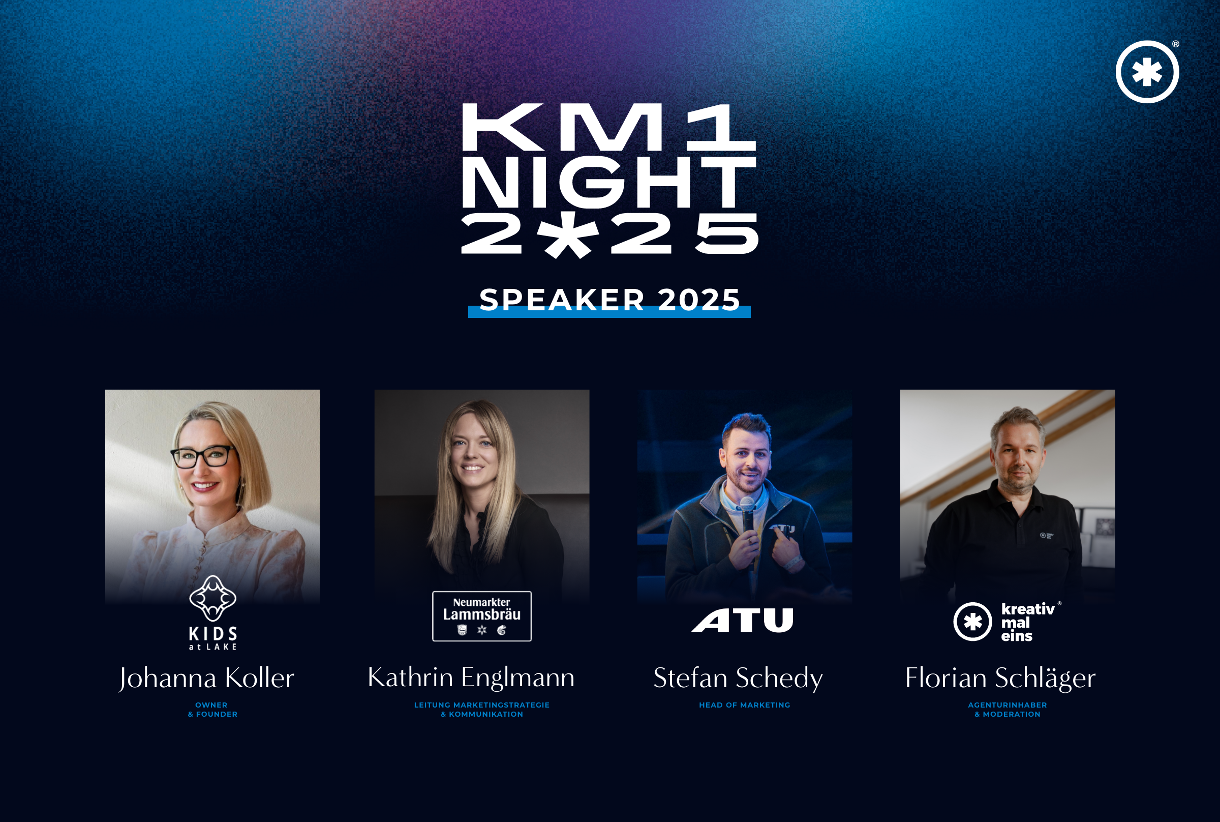 Nach dem großen Erfolg der vierten KM1 Night steht fest: Das Format wird fortgesetzt. Bereits jetzt arbeitet das Team von kreativmaleins* an der fünften Ausgabe im Jahr 2026. Dann heißt es wieder: Raum für neue Ideen, spannende Impulse und gute Gespräche rund um Marke, Design und Zukunft.