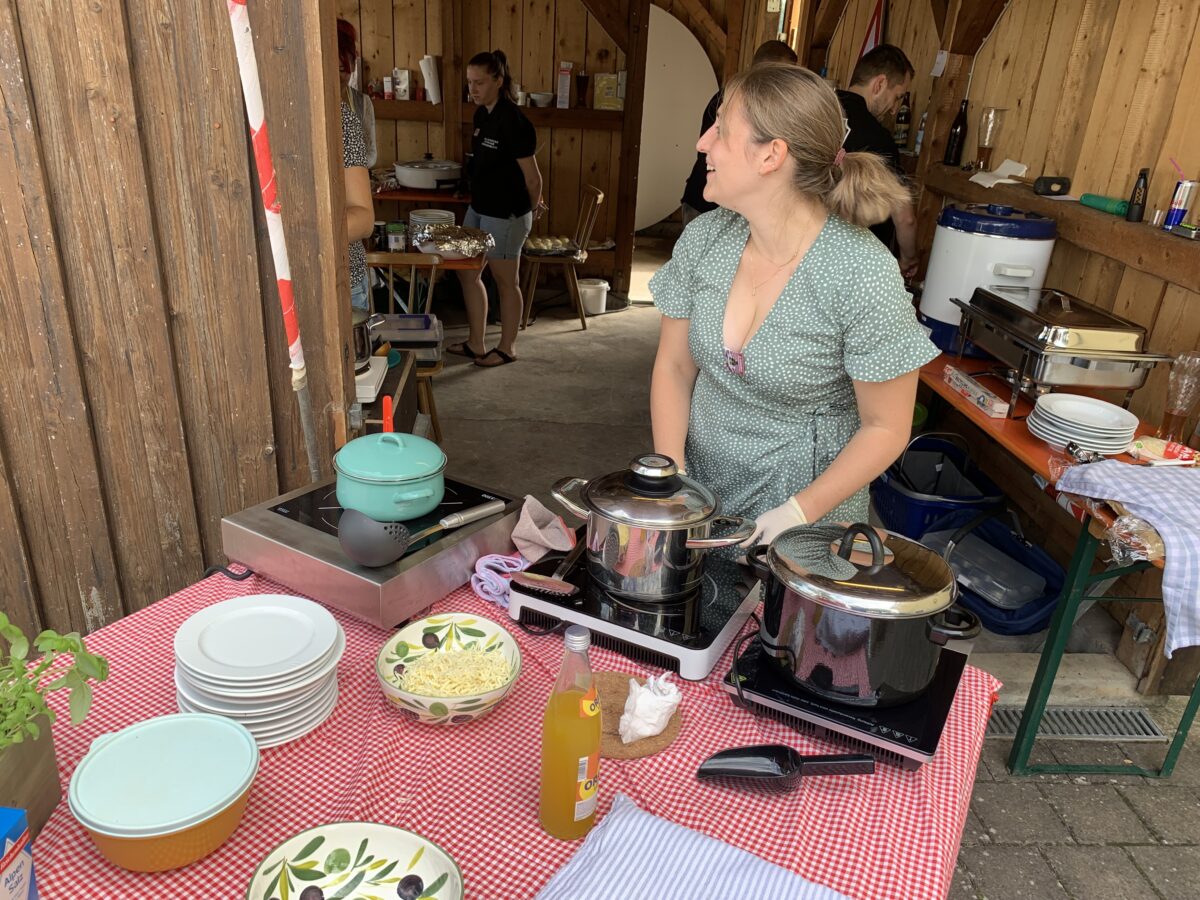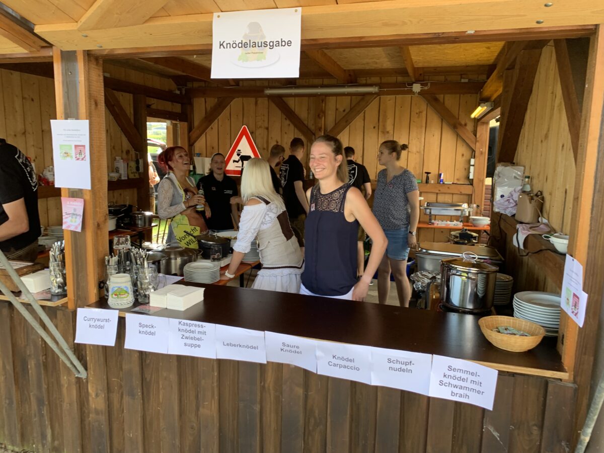 Pünktlich um 12 Uhr gab die Böllergruppe den Startschuss für das Fest. Es bildeten sich lange Schlangen an den Ausgabestellen für die Knödelspezialitäten. Vierzehn verschiedene Knödelarten standen zur Auswahl. Ob vegetarisch angerichtet oder mit Speck oder Fleischstücken, die Auswahl war beeindruckend.