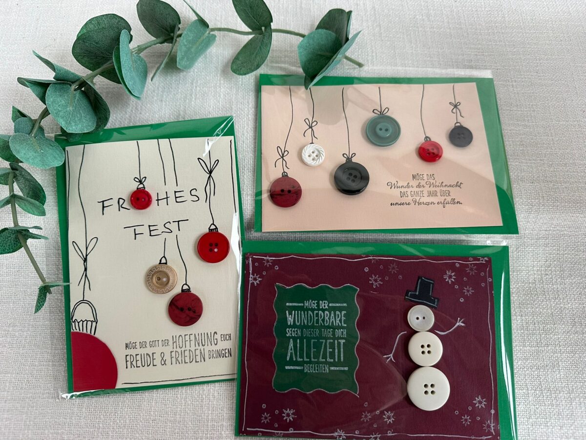 Zusätzlich gestalten Teilnehmende Weihnachtskarten und kleine Knopfobjekte mit Claudia Rehmann Lang und fertigen kleine Anhänger sowie Geschenke aus Knöpfen. Glühwein, Gebäck und adventliche Musik sorgen für eine warme Atmosphäre.