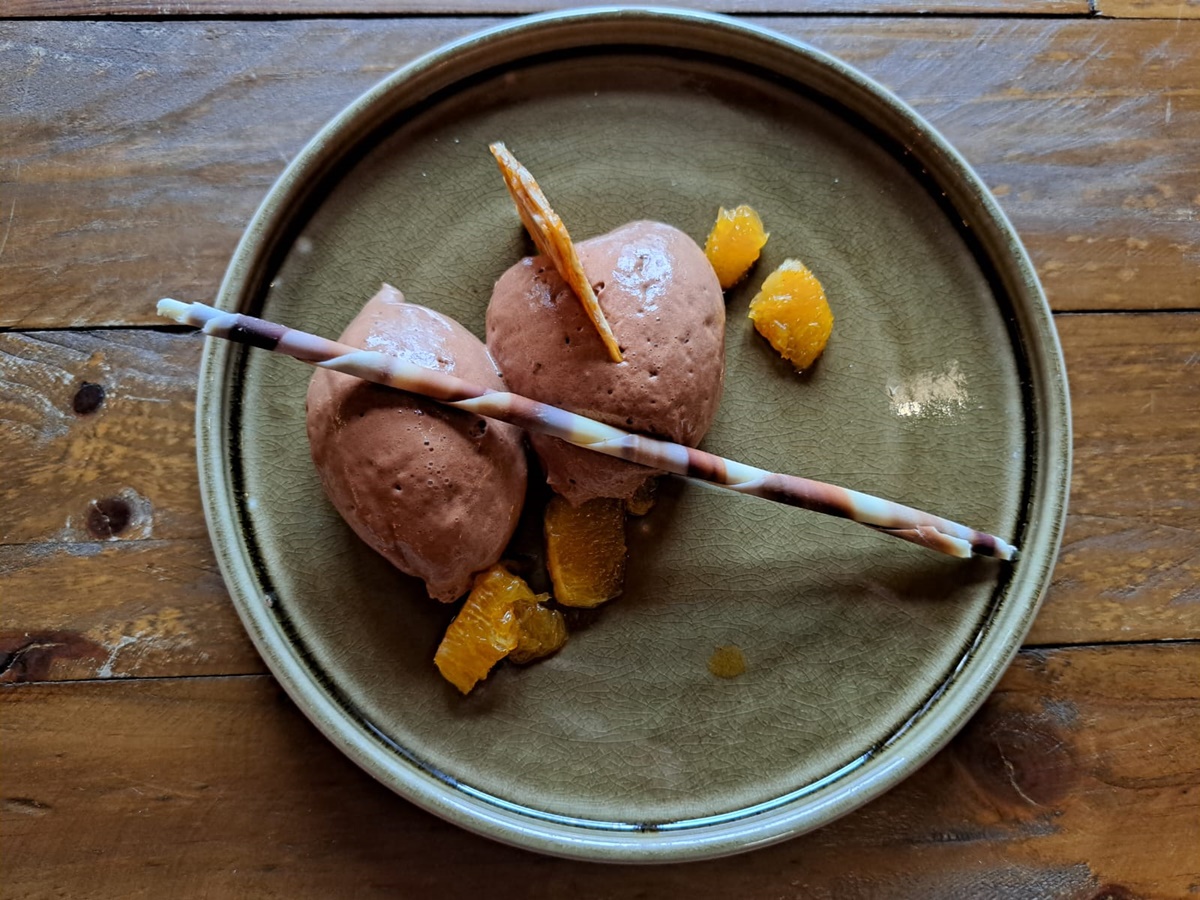Als Nachtisch gab es Mousse au Chocolat mit Mandelchip und Orange, natürlich ebenfalls alles selbst gemacht. Zusätzlich dürfte die M9 noch hausgebackenes Roggenmischbrot vorbereiten, kneten und in Form bringen, was nicht ganz „mehlfrei“ von statten ging. Doch zum Glück gab es den Küchenchef, der immer für Fragen und Anregungen zur Seite stand.