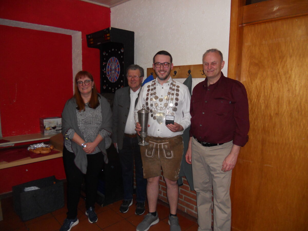 Vereinsmeister Jugend wurde mit 384 Ringen Luca Preisinger. Er hat damit einen Ring mehr als der Vereinsmeister der Schützenklasse! Gefolgt von Emma Meiler (371 Ringe), Angelina Stark (358 Ringe) Felix Stark (317 Ringe) und Sophie Högen mit 312 Ringen. Alle Pokale hierfür wurden vom Ehrenschützenmeister Josef Pohl gestiftet.