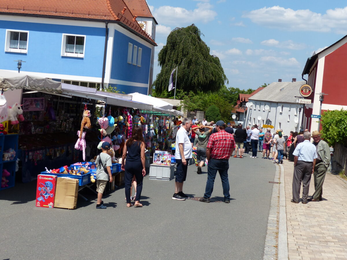 Am Samstagvormittag fanden nicht nur in den beiden Gotteshäusern die Kirchweihgottesdienste statt. In dieser Zeit rückte ein Fierant nach dem anderen mit seinem Verkaufswagen an. Routiniert wurden die Verkaufsstände aufgebaut und die unterschiedlichsten Waren präsentiert. Die Gaststätten und die Zoiglstube hatten zum Mittagstisch einiges zu tun.