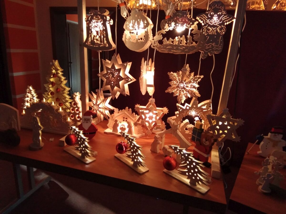 Eine besondere Bereicherung des Basars waren die präsentierten Holzschnitzkünste von Siegfried Hanauer aus Burgtreswitz. Er hatte sein Hobby bei den Profischnitzern in Pleystein erlernt und ließ sich beim Schnitzen von Krippenfiguren über die Schulter blicken. Der Künstler Franz Lingl reiste aus Chamerau an, um seine handgefertigten und originellen 3D-Advents- und Weihnachtsdekos zu präsentieren. Erika Bauer war mit selbstgenähten Handarbeiten und Klöppelsachen vor Ort. Die Ministranten boten beleuchtete Engel, Handarbeiten und Weihnachtskarten an. Zudem gab es eine Bastelecke, wo die Gottesdiener den Kindern die Wartezeit bis zum Erscheinen von Sankt Nikolaus verkürzten. Der heilige Nikolaus, in dessen roten Gewand Kolpingchef Gregor Härtl persönlich geschlüpft war, überraschte am späten Nachmittag mit drei Engeln die Kinder mit kleinen vorweihnachtlichen Geschenken.