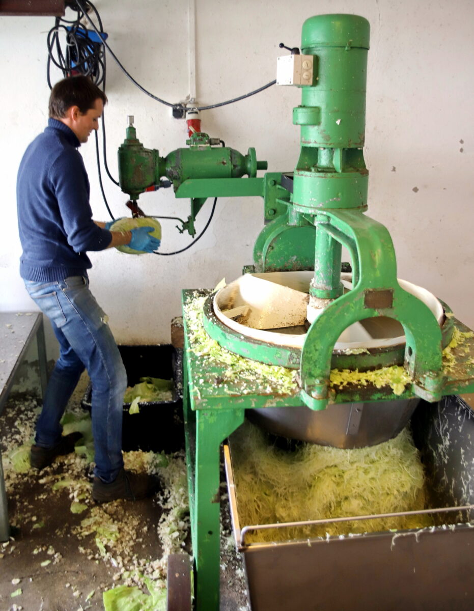 „Seit den 1950er Jahren sorgen wir nun in dritten Generation auf unserem Betrieb für frische Ware und dazu zählt das selbst hergestellte Sauerkraut als unverzichtbares Wintergemüse, mit dem wir gerne den regionalen Bedarf decken“, so die Aussage von Thomas Beutner, der vor wenigen Jahren den Betrieb übernommen hat. Verwendet wird für das Endprodukt Sauerkraut ausschließlich selbst angebauter, qualitativ hochwertiger Weißkohl. Die Felder um den Aussiedlerhof gelten als sehr nährstoffreich, sind somit ideal. „Ohne jegliche chemische Zusätze, nach altbewährtem Prozedere, das unser Großvater schon auf die gleiche Weise nutzte“, erklärt der Landwirt. Verwendung finden Sorten, die im Herbst reifen, idealerweise mit besonders festen Blättern und Köpfen.