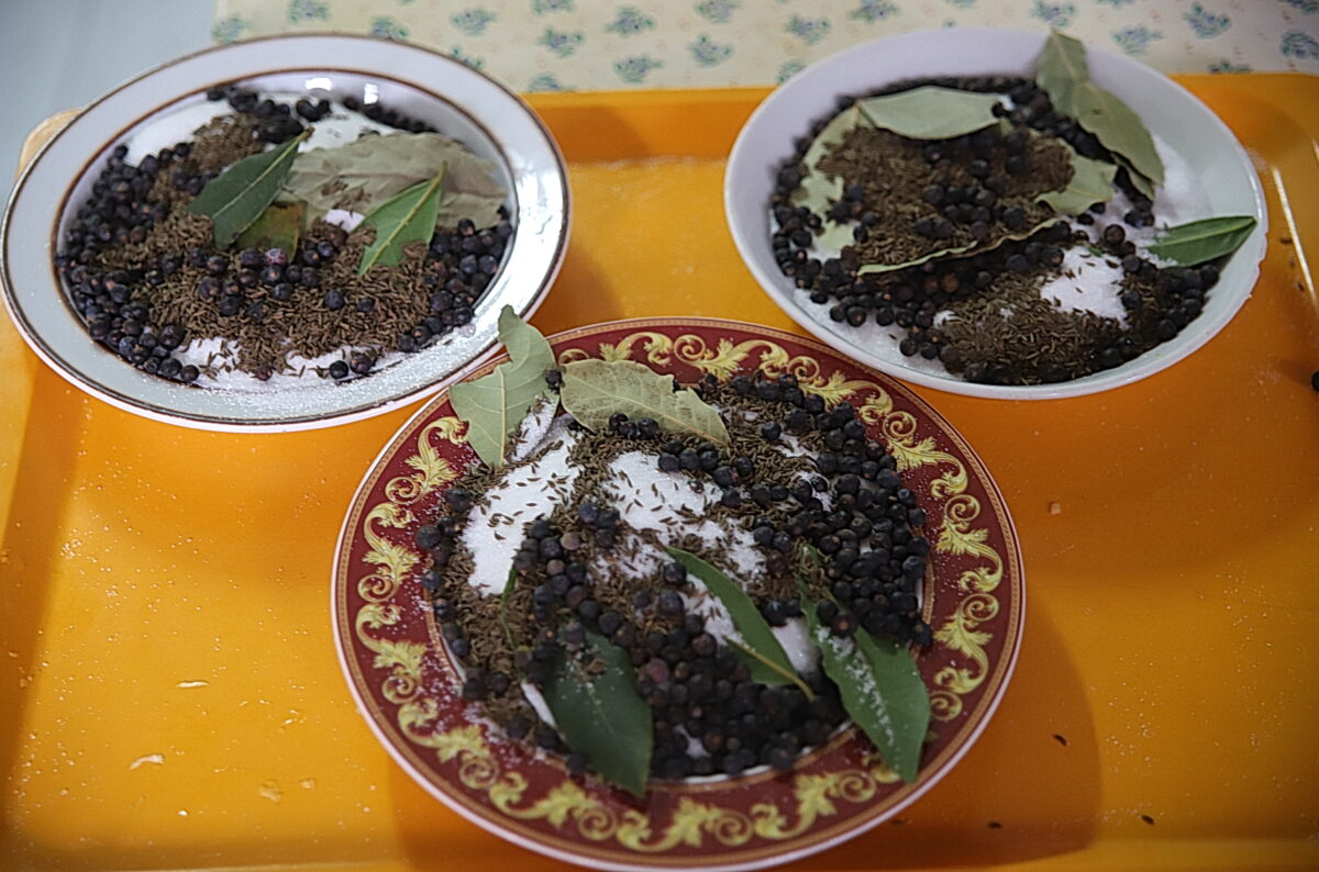 - 1 gestrichener Teelöffel Wacholderbeeren