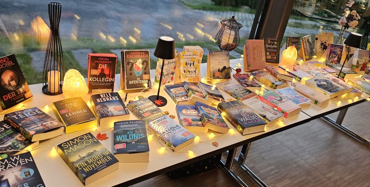 Am jährlichen Wein-Lese-Abend verwandelte sich die Kohlberger Bücherei wieder in einen stimmungsvollen Treffpunkt, der Krimi- und Genussfreunde gleichermaßen anzog. Die Bücherei erstrahlte an diesem Abend in einem ganz eigenen Ambiente. Kerzen und gedämpftes Licht empfingen die zahlreichen Besucher und zwischen den Regalen lag der Duft von Wein und frisch angerichteten Häppchen in der Luft.