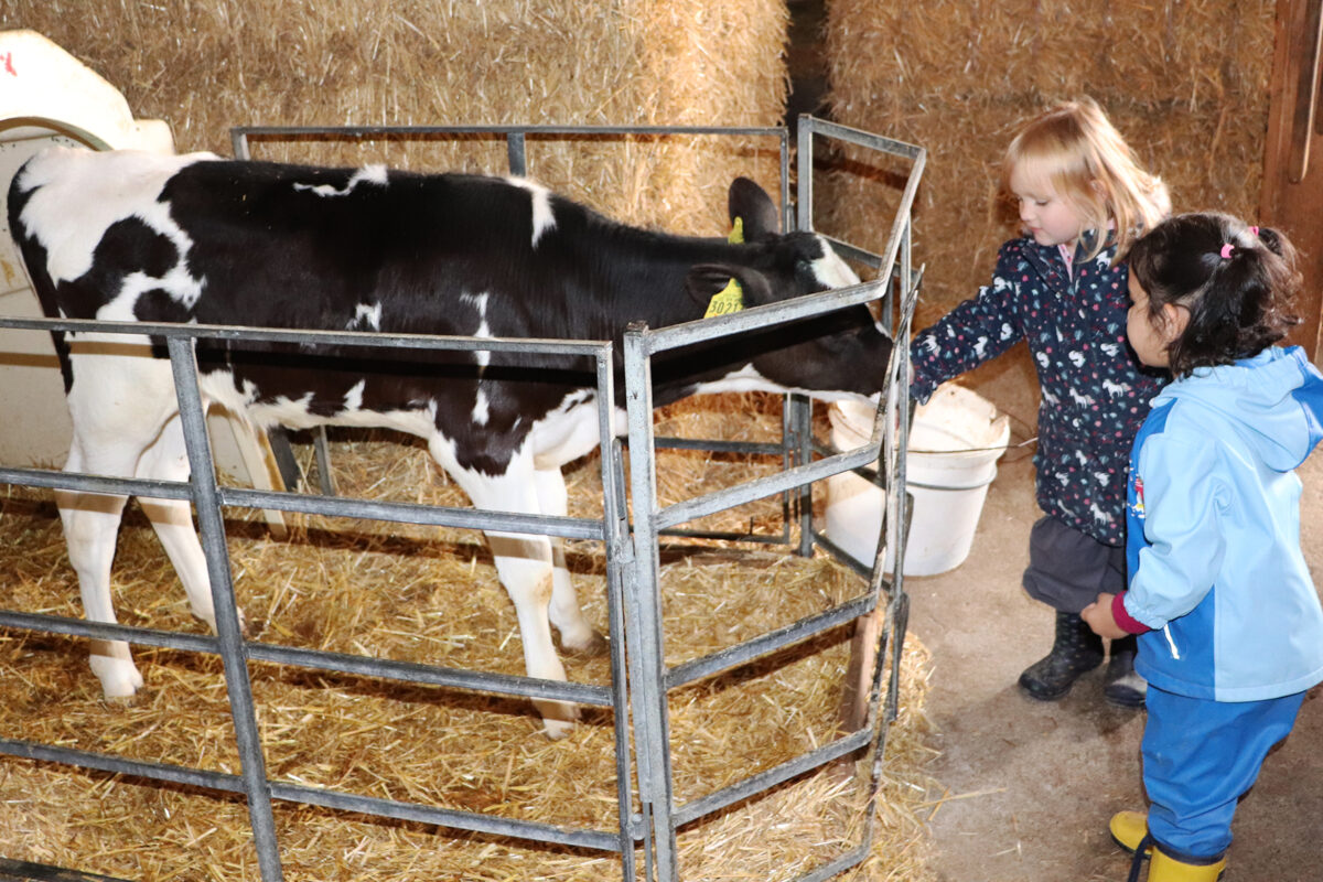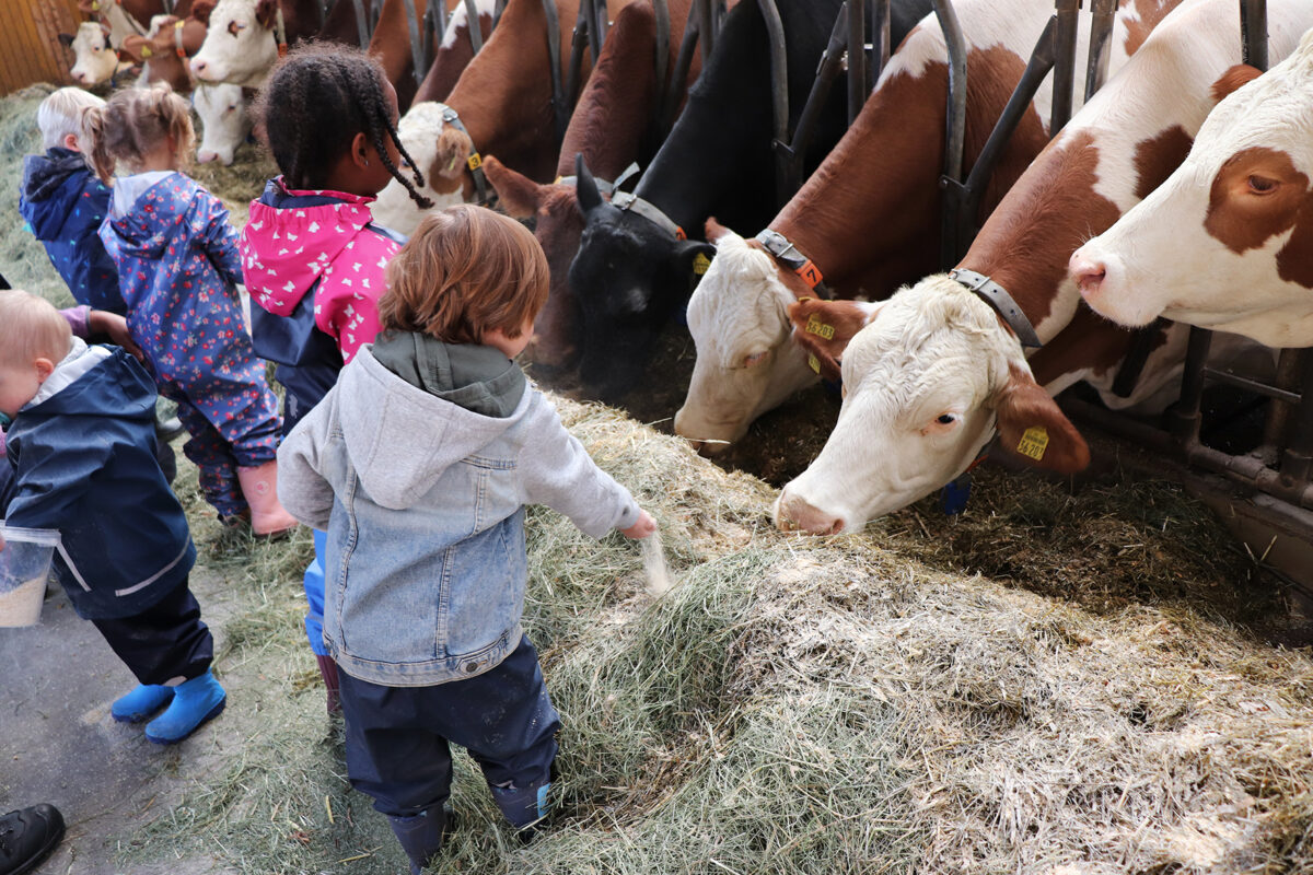 Auf den Bauernhöfen lernen die Kinder spielerisch, dass Grundnahrungsmittel direkt vor den Toren der Stadt erzeugt werden. “Die Kinder durften sich richtig schmutzig machen, sie durften Kühe und Kälber streicheln, die Hühner besuchen und Eier einsammeln”, berichtet Sonja Wimmer, Leiterin der Kita St. Markus, „diese Eindrücke legen den Grundstock für einen achtsamen Umgang mit Tier und Natur.”