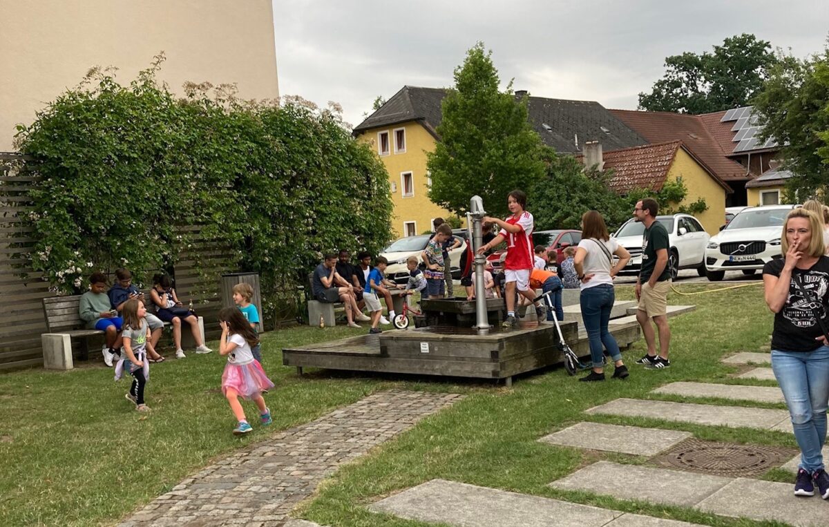 Für die Kinder war wie jedes Jahr das Wasserspiel auf dem Dorfplatz das Highlight, wo sich manch einer bei den hohen Temperaturen gerne abkühlte. Bei einem