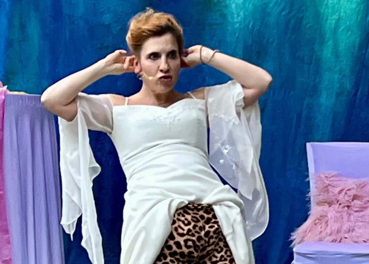 Der Brautsträuße wurden ins Publikum geschmissen. Zur Gaudi derer, die ihn fingen. Das Programm war albern, ironisch und saukomisch. Das Fazit aus dem Abend: “Wer keinen Humor hat, sollte nicht heiraten.” Es war ein Programm für Jedermann, egal ob verheiratet oder nicht. Im zweiten Teil war die Ehe schon in die Jahre gekommen. Claudia trug schwarz, Irene stand im blauen Schlabber-Ganzkörperanzug auf der Bühne.