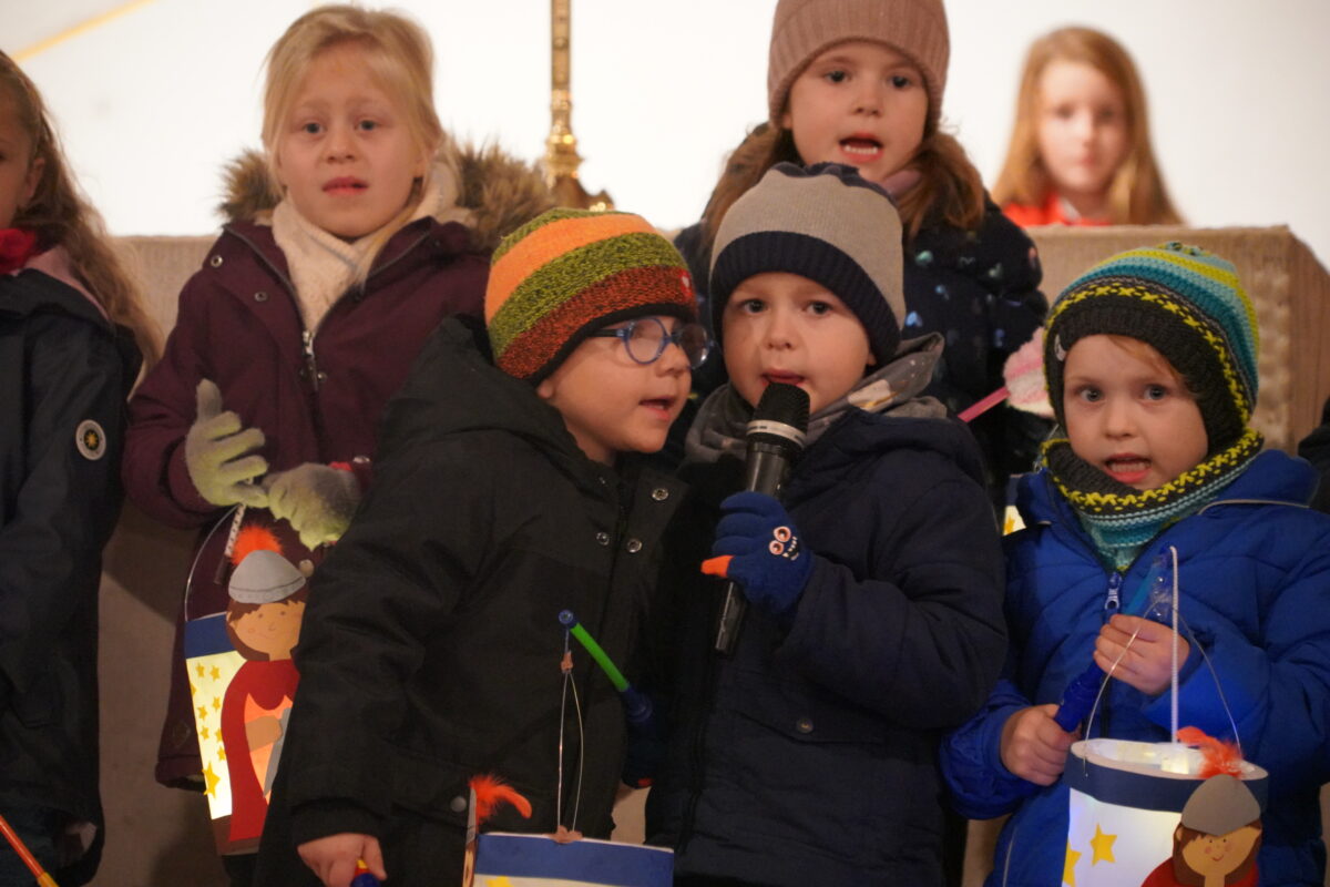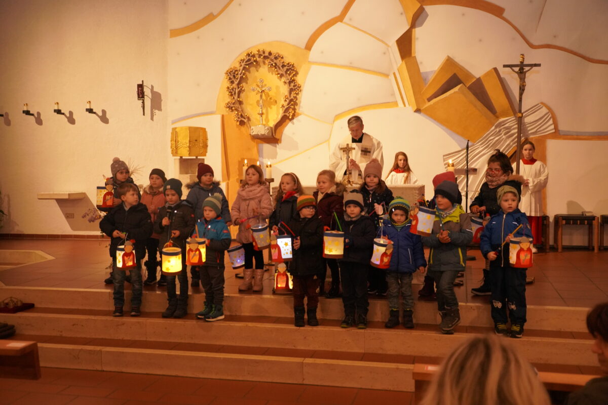 Der Geistliche erklärte den jungen Christen kurz den Sinn der Martinfeier und es fand ein Martinsspiel statt. Anschließend segnete er Kinder und Lichter.