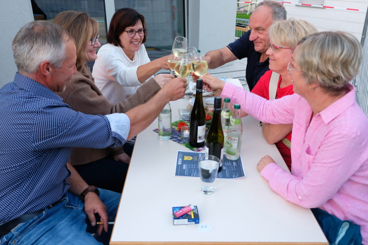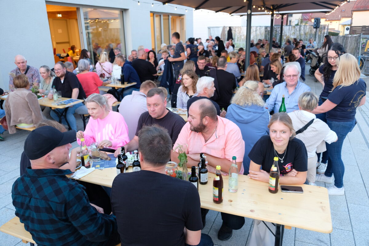 Auch im neuen Pfarrheim und auf der Terrasse des neuen Gesellschaftstempels lässt es sich zünftig feiern. Das Weinfest der Ladykracher entwickelte sich jedenfalls zu einem stimmungsvollen Abend für alle Sinne. Alle Hände voll zu tun hatten die Ladykracher, um die große Nachfrage nach herzhaften Brotzeiten zu befriedigen.