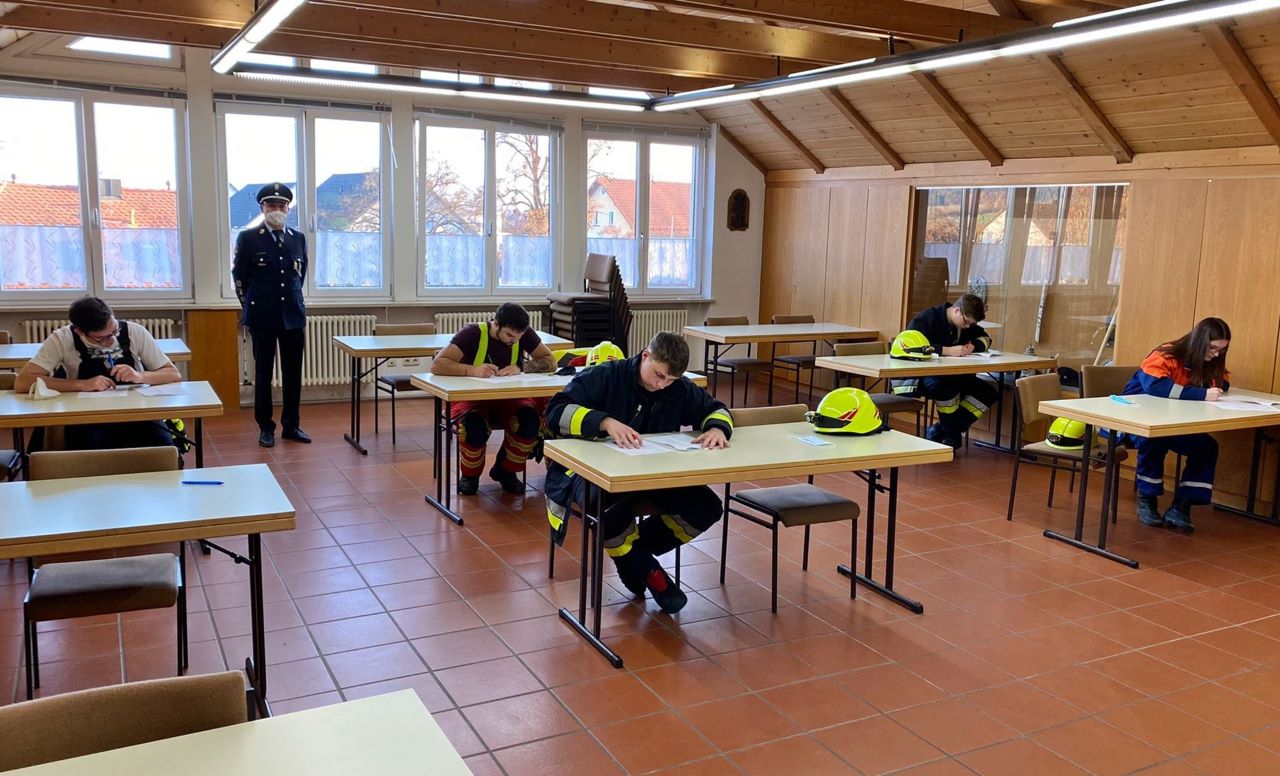 Die Nachwuchskräfte mussten unter anderem die Inbetriebnahme eines Feuerlöschers am Einsatzfahrzeug erklären, Knoten binden und die Handhabung eines Handfunkgerätes erläutern. Dazu gab es noch eine theoretische Prüfung mit insgesamt 50 Fragen.