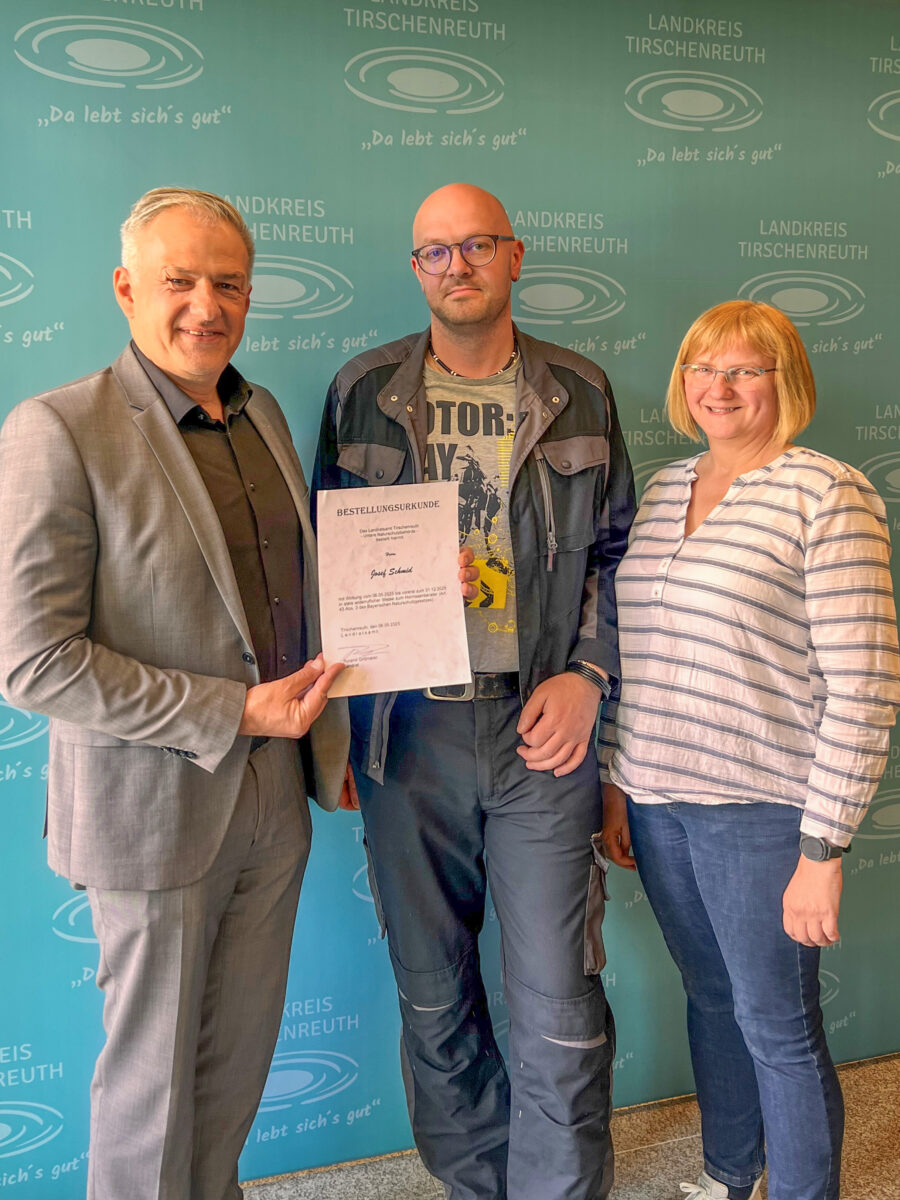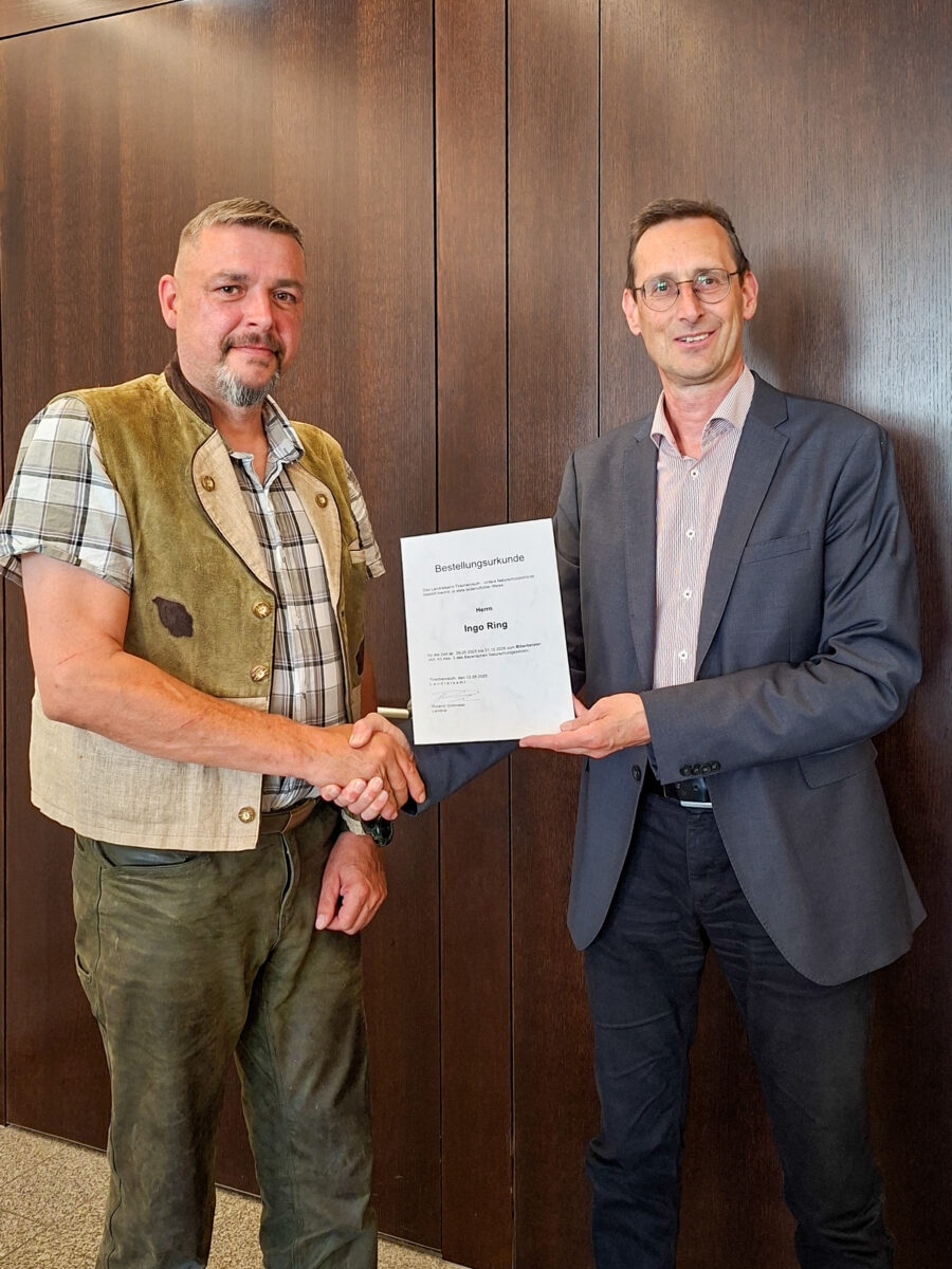 Der Schutz heimischer Tierarten ist eine wichtige Aufgabe im Landkreis Tirschenreuth – dabei spielt auch das Ehrenamt eine zentrale Rolle. Im Mai konnte Landrat Roland Grillmeier gleich zwei neue engagierte Fachberater in ihren Aufgabenbereich einführen: Josef Schmid aus Tirschenreuth wird künftig als Hornissen- und Wespenberater tätig sein, während Ingo Ring aus Neusorg den Landkreis als frisch ausgebildeter Biberberater unterstützt.