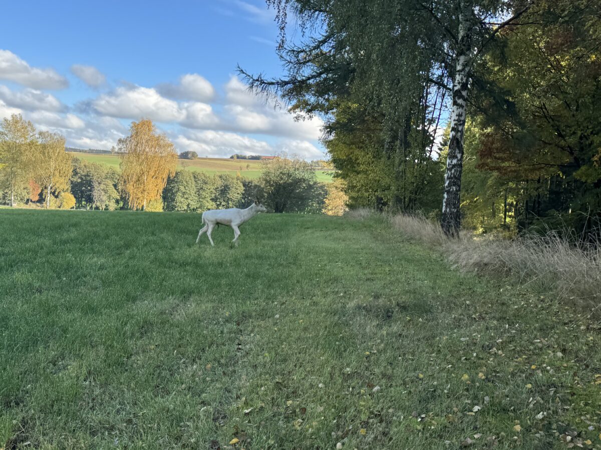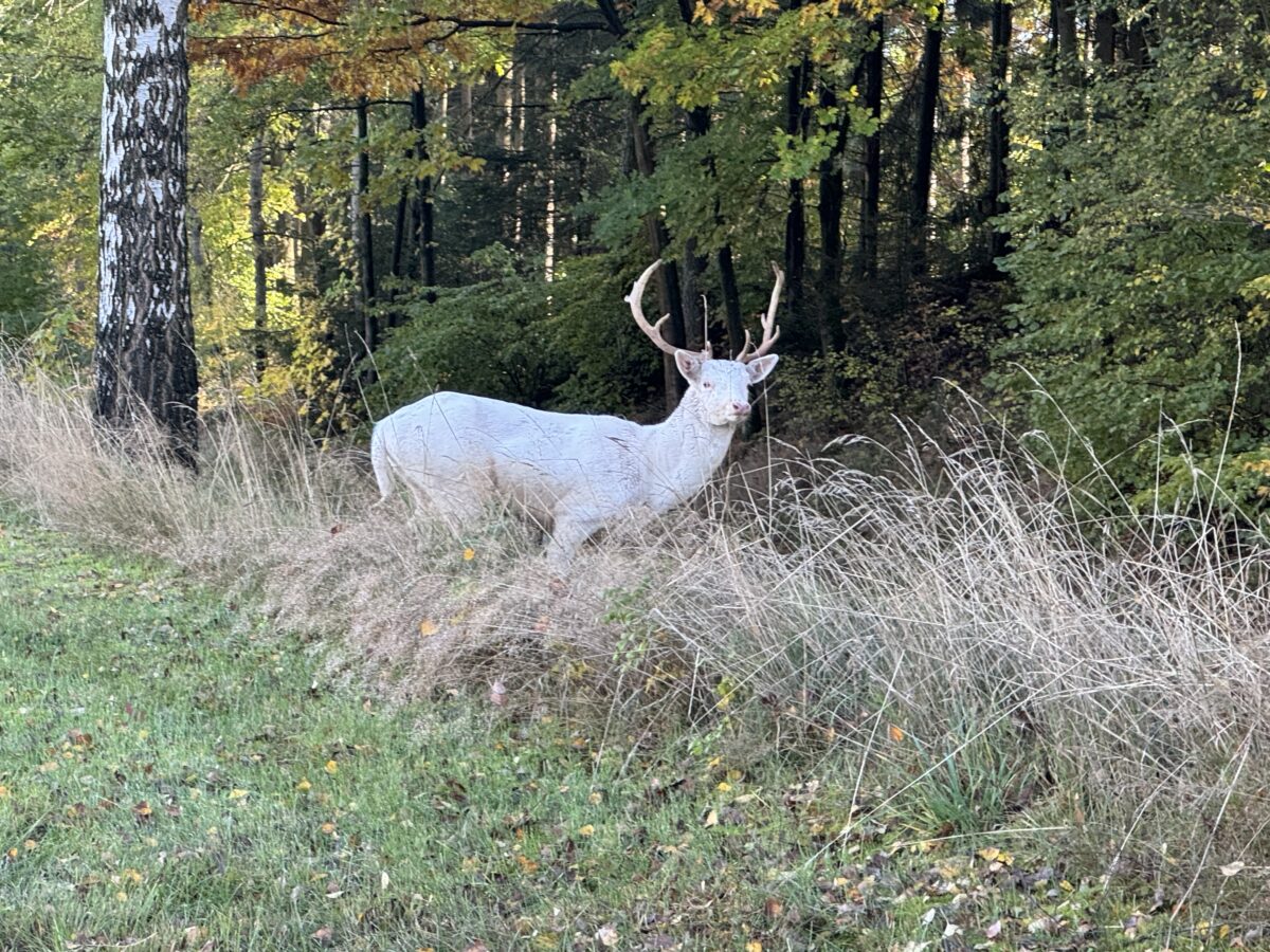 “Gesehen hab ich den Albino am Mittwoch um 14.51 Uhr”, berichtet Sabine Eckert vom Mühlenhof. “Ich bin nah ran gekommen, er wirkte nicht ziemlich scheu.”