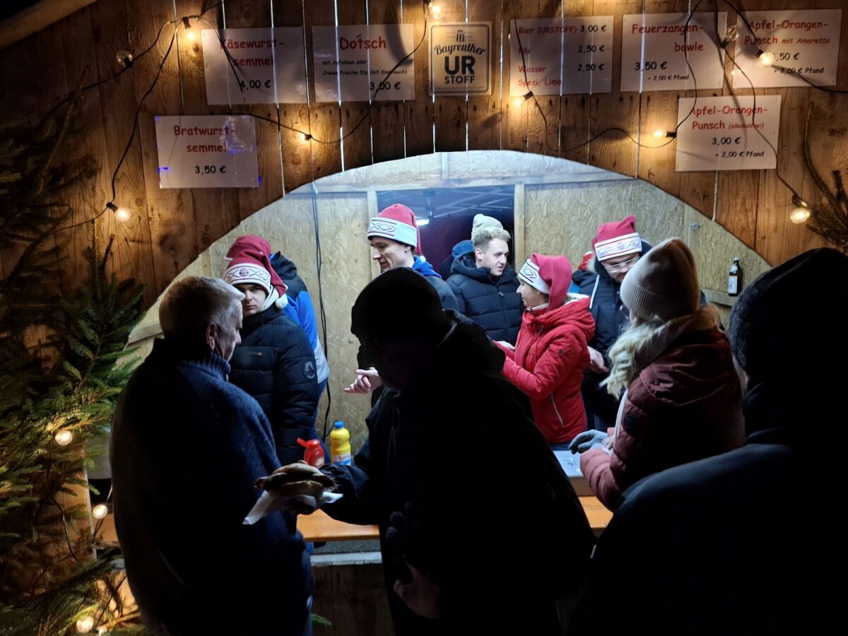 Besucher konnten sich beim Schlendern entlang der Verkaufsbuden an Glühwein, regionalen und überregionalen Spezialitäten und Naturprodukten erfreuen. Mit weiß-blauen und rot-weißen Zipfelmützen zeigten Bayern- und Löwenfanclubs nicht nur ihre Gesinnung, sondern boten vielfältige Leckereien. Angereist waren auch der „KreeMo“ mit Kräutern und Likören und Meier aus Weiden mit seinen Honigprodukten.