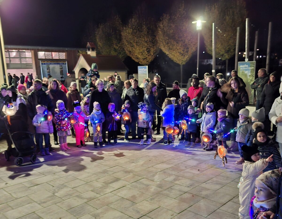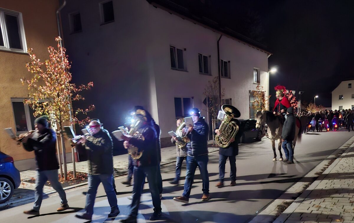 Nach dem Gottesdienst formierten sich unter der Leitung des Elternbeirats um Vorsitzende Manuela Bösl die Kinder mit Eltern und Großeltern zu einem langen, bunten Lichterzug. Im Schein der unzähligen selbst gebastelten Lampions zog der Martinszug von der Kirche in Richtung Kommunbrauhaus. Die musikalische Begleitung mit Martinsliedern, unter anderem mit “Ich geh mit meiner Laterne”, übernahmen die Musiker der “Werkstattmusikanten” um Leiter Marco Procher.