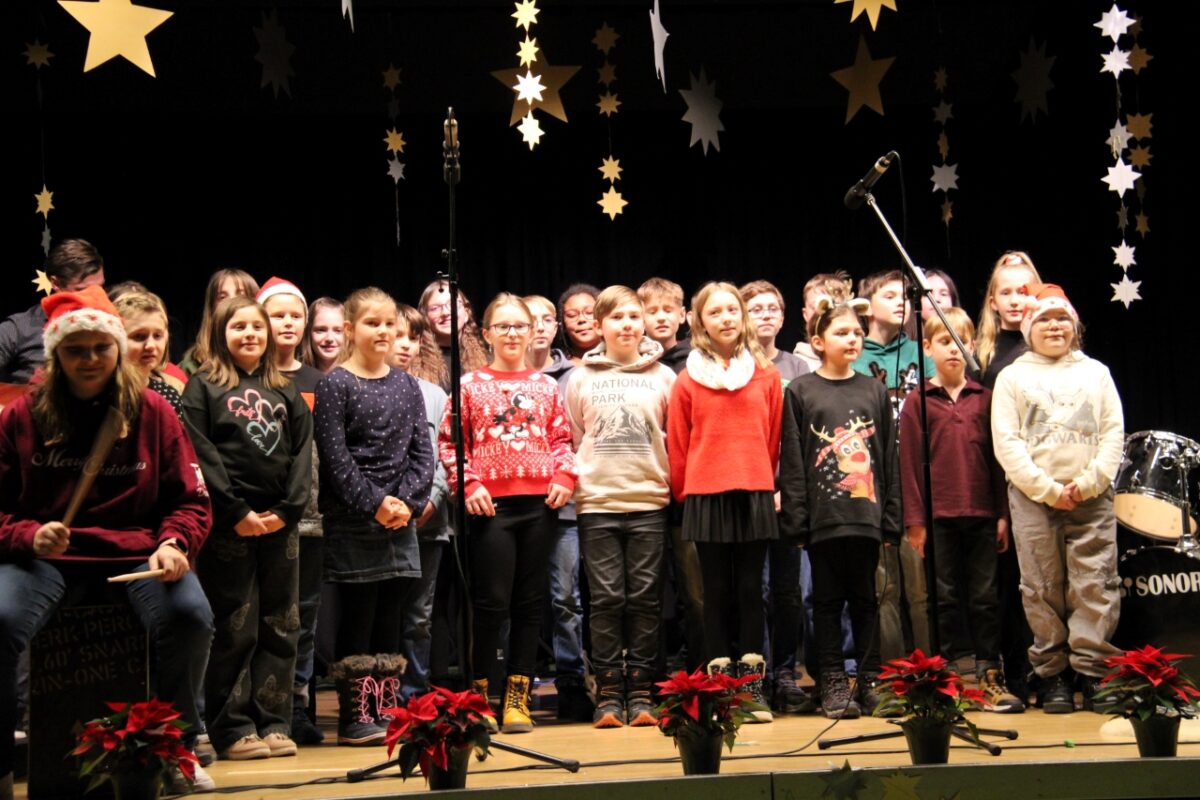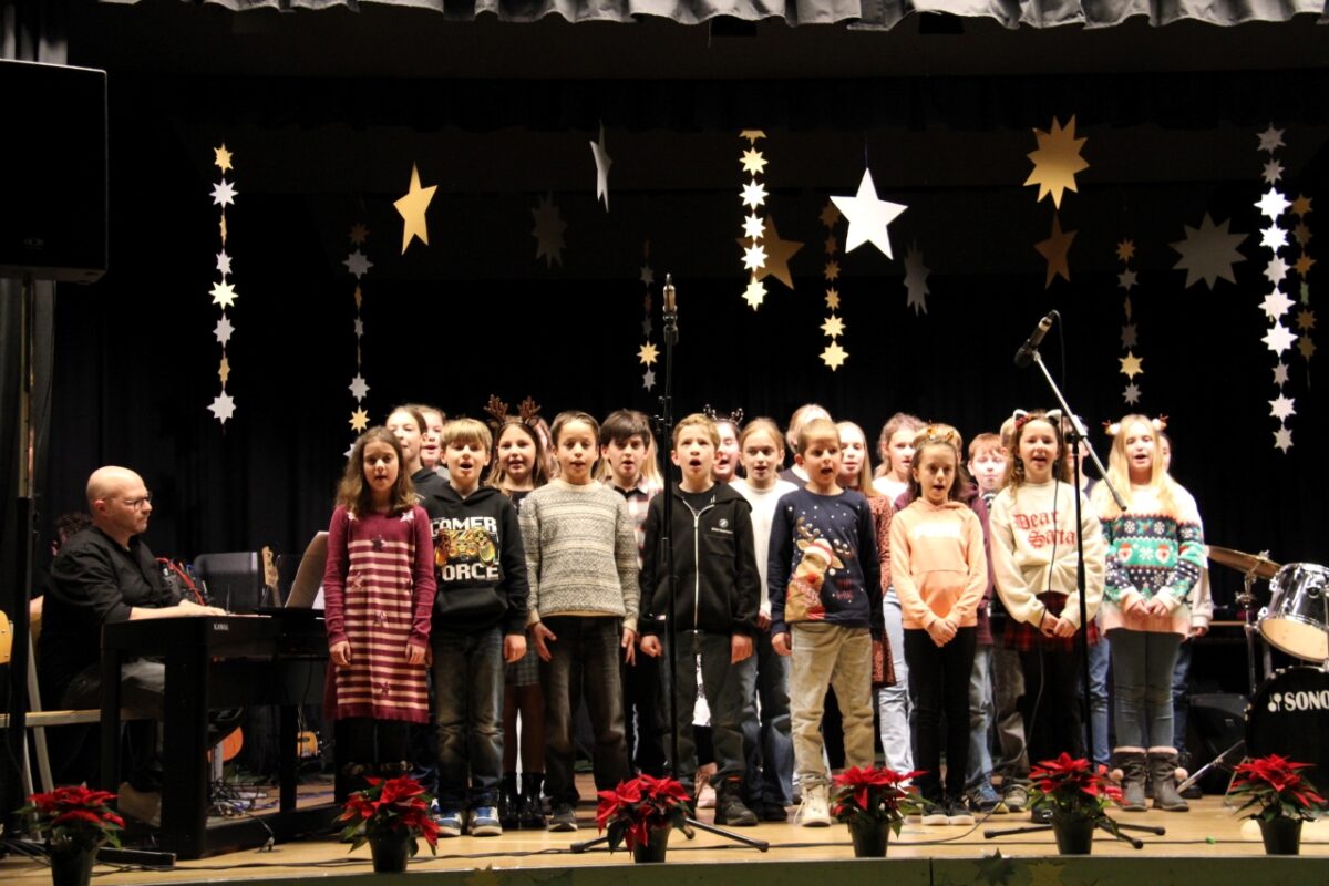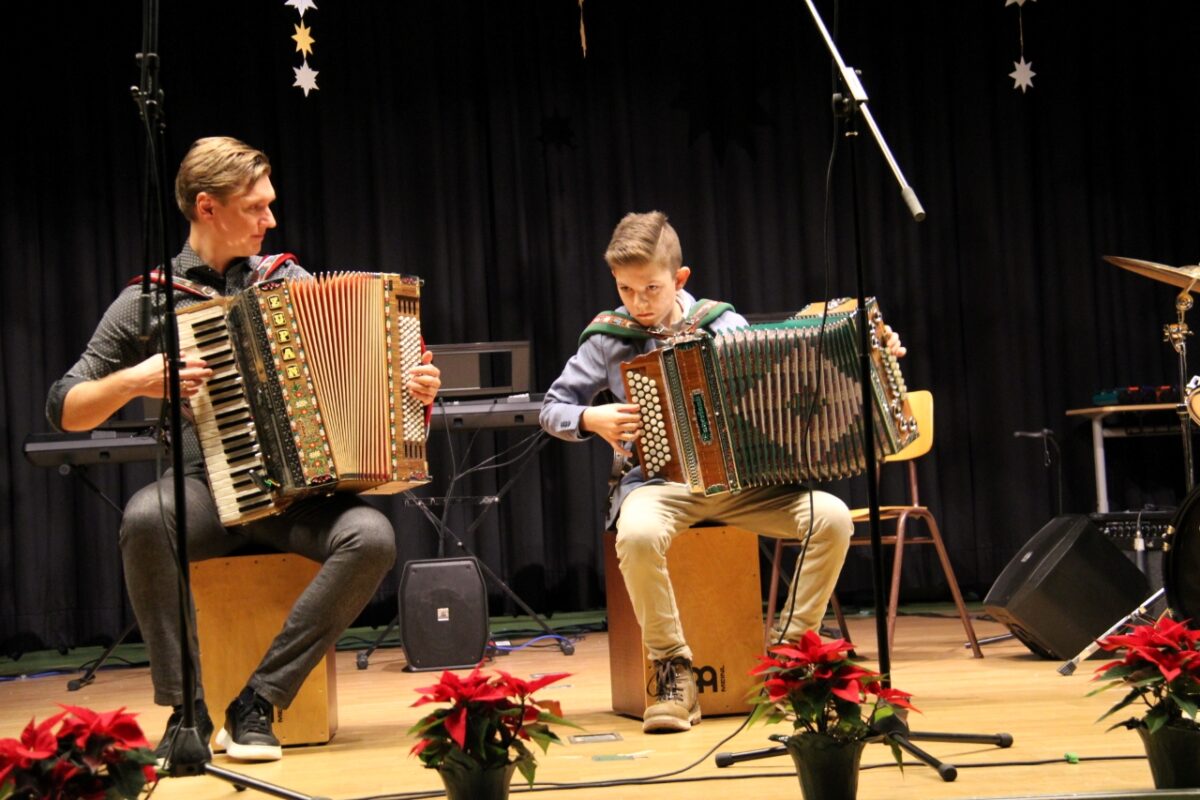 Höhepunkte des Weihnachts-Aktionstags waren zwei Konzerte in der Turnhalle, die ein fast identisches Programm hatten. Wie bereits beim Sommerkonzert wurde auch das Weihnachtskonzert zweimal aufgeführt, da die Turnhalle alle Eltern, Geschwister und die über 800 Schüler nicht auf einmal aufnehmen konnte. 2. Konrektor Matthias Bösl begrüßte die Zuhörer und blickte auf die stressige Zeit der Vorbereitung und Proben der Mitwirkenden zurück. „Die Schüler sind ganz heiß, das darzubieten, wofür sie lange geübt haben“. Die mitwirkenden Schülerinnen und Schüler sowie die Lehrkräfte präsentierten sich einmal mehr als „starkes Team“ und boten in den verschiedensten Besetzungen oder als Solisten ein buntes, abwechslungsreiches Programm und beste Unterhaltung mit weihnachtlicher Musik.