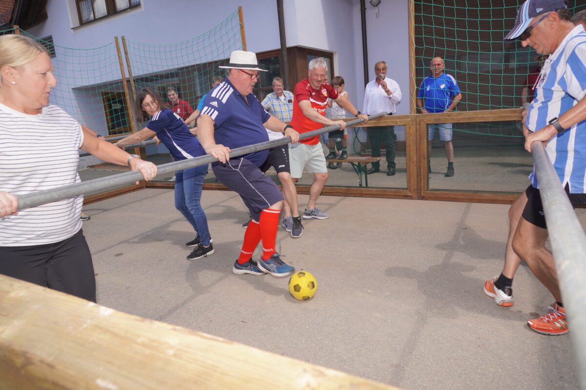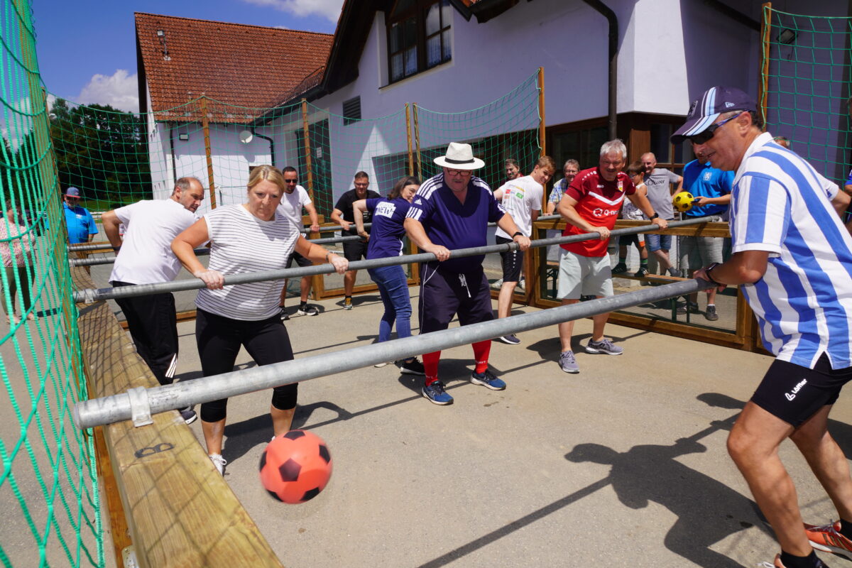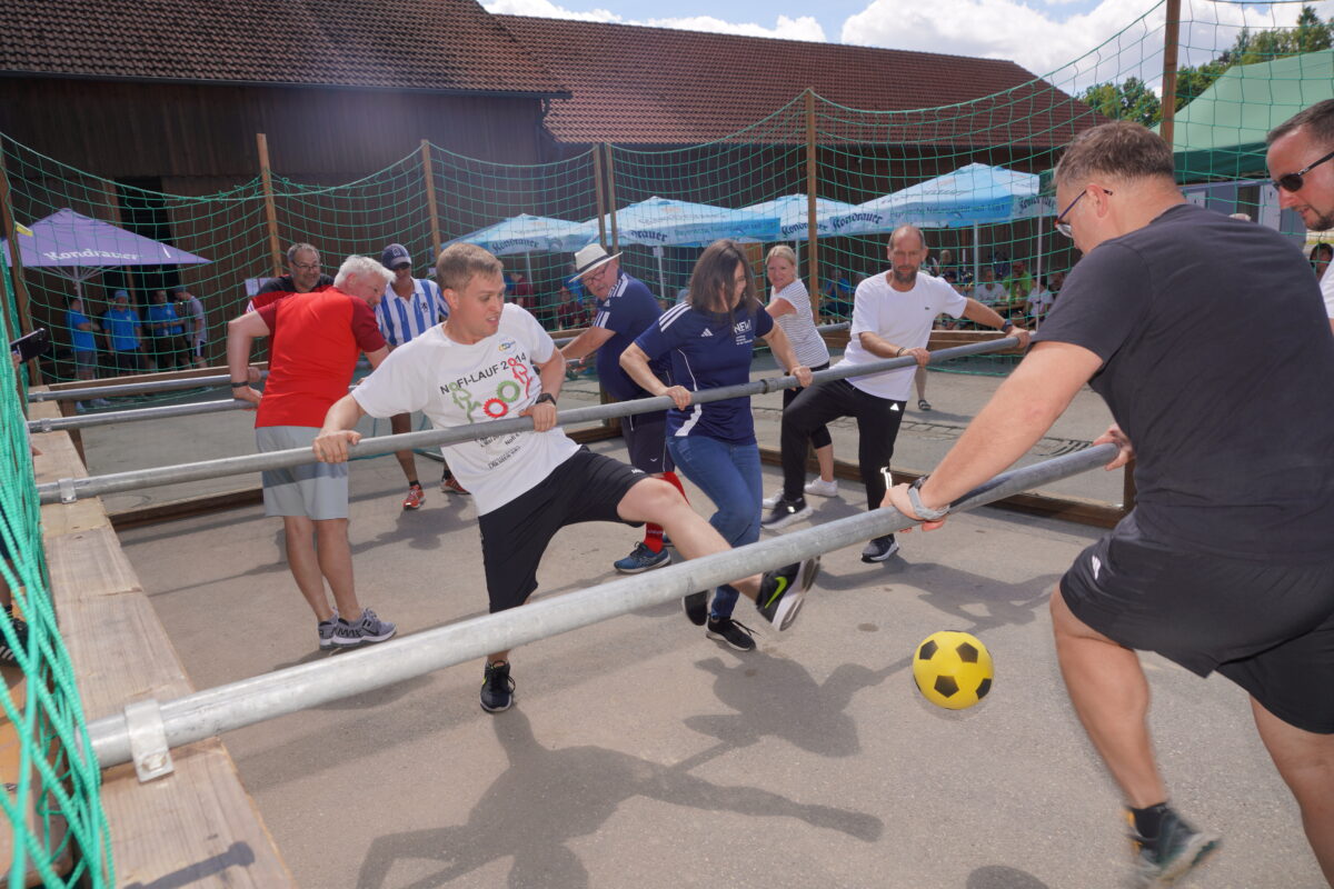 Insgesamt zehn Teams stellten sich beim Jubiläum der Löwenfreunde Waldthurn-Vohenstrauß beim Lebendkickerturnier der Konkurrenz. Die Löwenfreunde selbst beteiligten sich dabei als Organisatoren, Alessandro Götz und Simon Meierhöfer fungierten unter der Oberaufsicht „des nach eigenen Angaben technischen Direktors“ des Waldthurner Bürgermeisters Josef Beimler als kompetente Schiedsrichter.