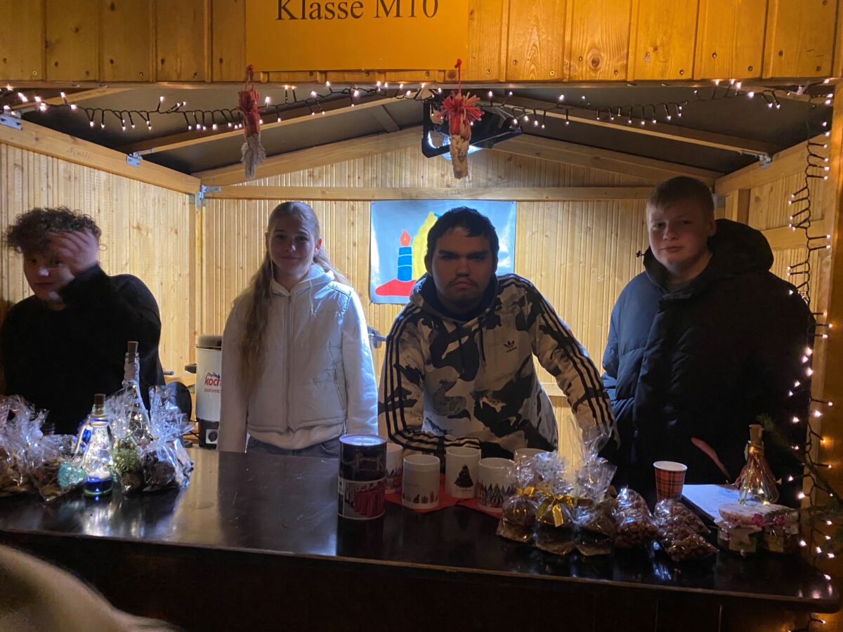 Neben dem Verkauf der Bastelarbeiten bot die Klasse M10 auch kulinarische Genüsse an. “Glühwein, besonders geschätzt von den Erwachsenen, sowie alkoholfreie Varianten für die jüngeren Besucher”, wurden ergänzt durch selbstgebackene Plätzchen und gebrannte Mandeln. Die engagierten Jugendlichen sorgten für einen reibungslosen Ablauf und schufen eine warme, einladende Atmosphäre, die den Weihnachtsmarkt zu einem vollen Erfolg machte.