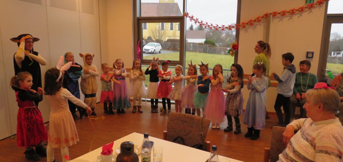 Ein Highlight des Nachmittags war der Auftritt der Kinder der Turnabteilung des SV Altenstadt/WN. Mit dem getanzten Hit „Macarena“ unterhielten die Kinder die Faschingsrunde. Mit großem Applaus wurde der Auftritt der Kinder belohnt. Bonbons regneten auf die Kids. Mit einem dreifachen „Altenstadt Helau“ verabschiedeten sich die Tanzkinder. In einer kurzen Büttenrede erzählt Claudia Stöckl humoristisch Gegebenheit aus der Runde der Senioren. Gemeinsam feierten die Gäste mit einer Runde Eierlikör im Schokobecher.