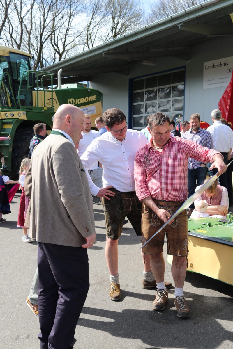„… Ein zu viel an Technik ist aber ein Übel, da viel zu hohe Kosten entstehen. Mit eurer Gemeinschaft habt ihr die beste Lösung gefunden!“ sagte der Krone-Verkaufsleiter Hans-Dieter Heet, der für die Feier extra aus dem hohen Norden angereist war. Zum Fuhrpark der Mähgemeinschaft Tirschenreuth gehören zwei „Big M“, die zum Mähen des Grünlandes verwendet werden und mit fünf Vierkreiselschwadern können mehrere Landwirte gleichzeitig das gemähte Grünland zum Heimtransport vorbereiten. Technik für über eine Million Euro. Auch mit dieser hohen Ausstattung sei es aufgrund von engen Erntezeitfenstern immer wieder eine Kür, alle unter einen Hut zu bekommen. „Wir können stolz darauf sein, Teil dieser einzigartigen Gemeinschaft zu sein.“ beendete Alexander Weigl seine Rede.