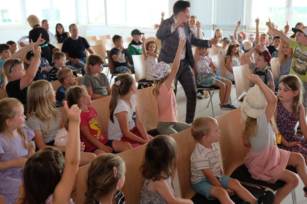 Zum Abschied lud Waltraud Wagner die Kita-Kinder und darüber hinaus die derzeitigen Grundschulkinder, die ehemals den Speinsharter Gemeindekindergarten besuchten, zu einer faszinierenden Zauberschau. Im großen Saal des Gemeindezentrums herrschte Begeisterung pur, als Zauberkünstler Marius Koslowski mit den Zauberwörtern Abrakadabra und Simsalabim einschließlich der Einfälle des Zauberhasens die Kids in einer einstündigen Show verzückte. Ein ideenreiches Abschiedsgeschenk der Kita-Leiterin mit magischen Momenten, das für die temperamentvolle Kinderschar unvergesslich bleibt.