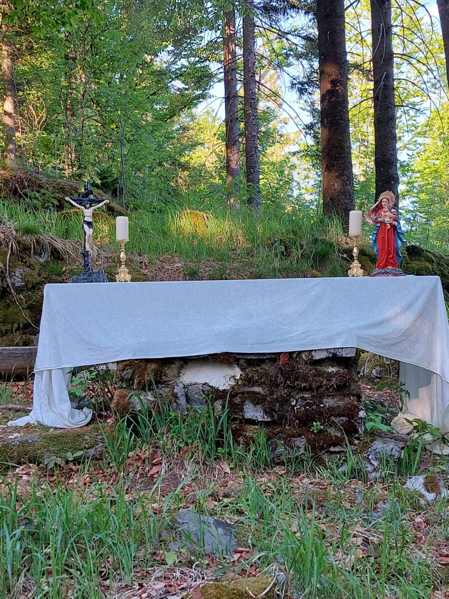 Am Sonntag, dem 11. Mai, fand wieder eine Maiandacht auf dem Entenbühl bei der Hubertuskapelle nahe Flossenbürg statt. Dies ist schon zu einer liebevollen Tradition geworden. Der Veranstalter, der Oberpfälzer Waldverein Flossenbürg, kann sich über eine zunehmende Besucherzahl erfreuen. Heuer war es geradezu ideal, es konnte nicht besser sein. Blauer Himmel, Frühlingsduft, angenehme Temperaturen und kaum Wind. Auch die geflügelten Plagegeister hielten sich noch sehr zurück.