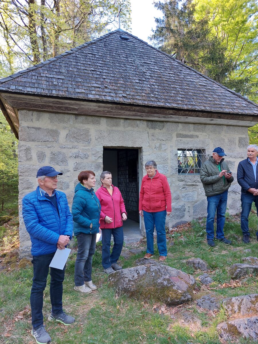 Der Schatzmeister des OWV Josef Bauer begrüßte vor Beginn der Andacht die Teilnehmenden und überbrachte den Gruß des Ersten Vorsitzenden Helmut Erndt, welcher anderweitig verhindert war. Er begrüßte Pater John, der das erste Mal diese Andacht hier halten durfte, sowie eine kleine Musikkapelle unter der Leitung von Franz Völkl. Dieser ließ sich nicht nehmen, trotz seines hohen Alters (83) den nicht leichten Weg zur Hubertuskapelle zu gehen und dort zu Ehren der Mutter Gottes zu spielen. Bauer bedankte sich auch beim „Mesner“ der Hubertuskapelle Alexander Achatz, der sich um die Ordnung und Erhaltung dieses schönen Kleinods kümmert. Erst vorige Woche wies er die Kapelle neu heraus. Auch Pater John zeigte sich positiv überrascht über die zahlreiche Teilnahme, es waren auch Feriengäste und Teilnehmer aus anderen Vereinen hier.