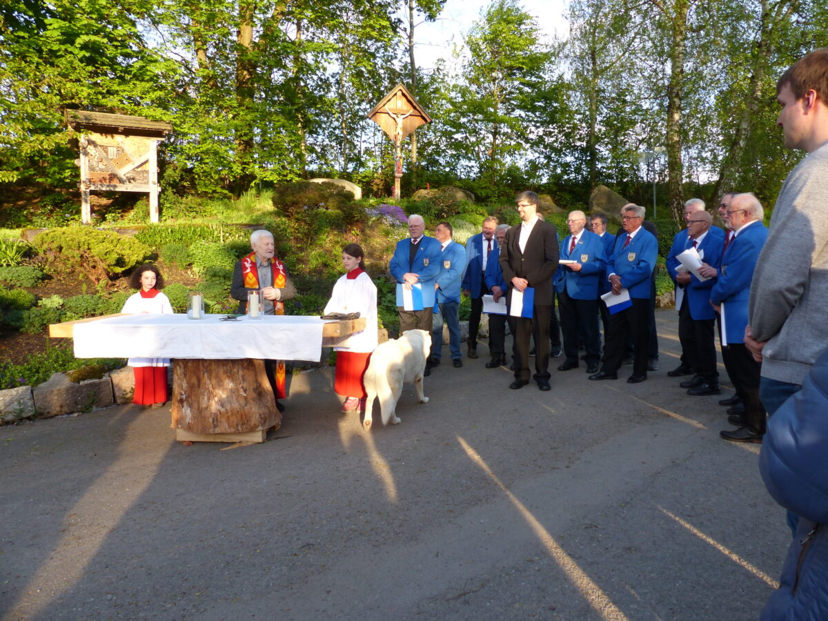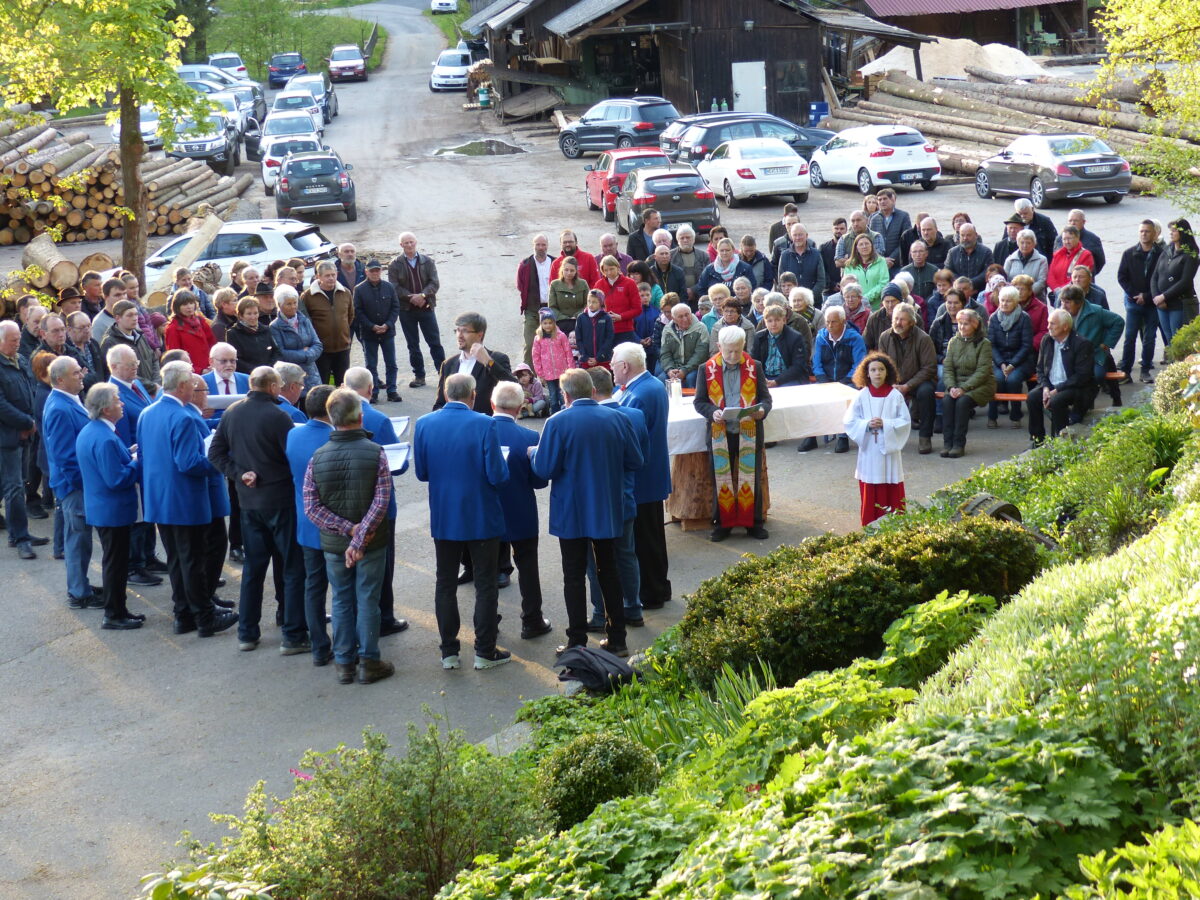 Auch für den Männergesangverein „Liederkranz“ aus Leuchtenberg mit Dirigent Holger Scheufler war es eine Premiere, auch sie hatten an diesem Ort den ersten Auftritt. Mit ihren Liedern umrahmten sie die Maiandacht und das Wetter hatte auch ein Einsehen und schicke an diesem frühen Abend Sonnenstrahlen. Zwischen den Gebeten und Gesängen ging Pfarrer Schlagenhaufer auf seinen Lebenslauf ein.
